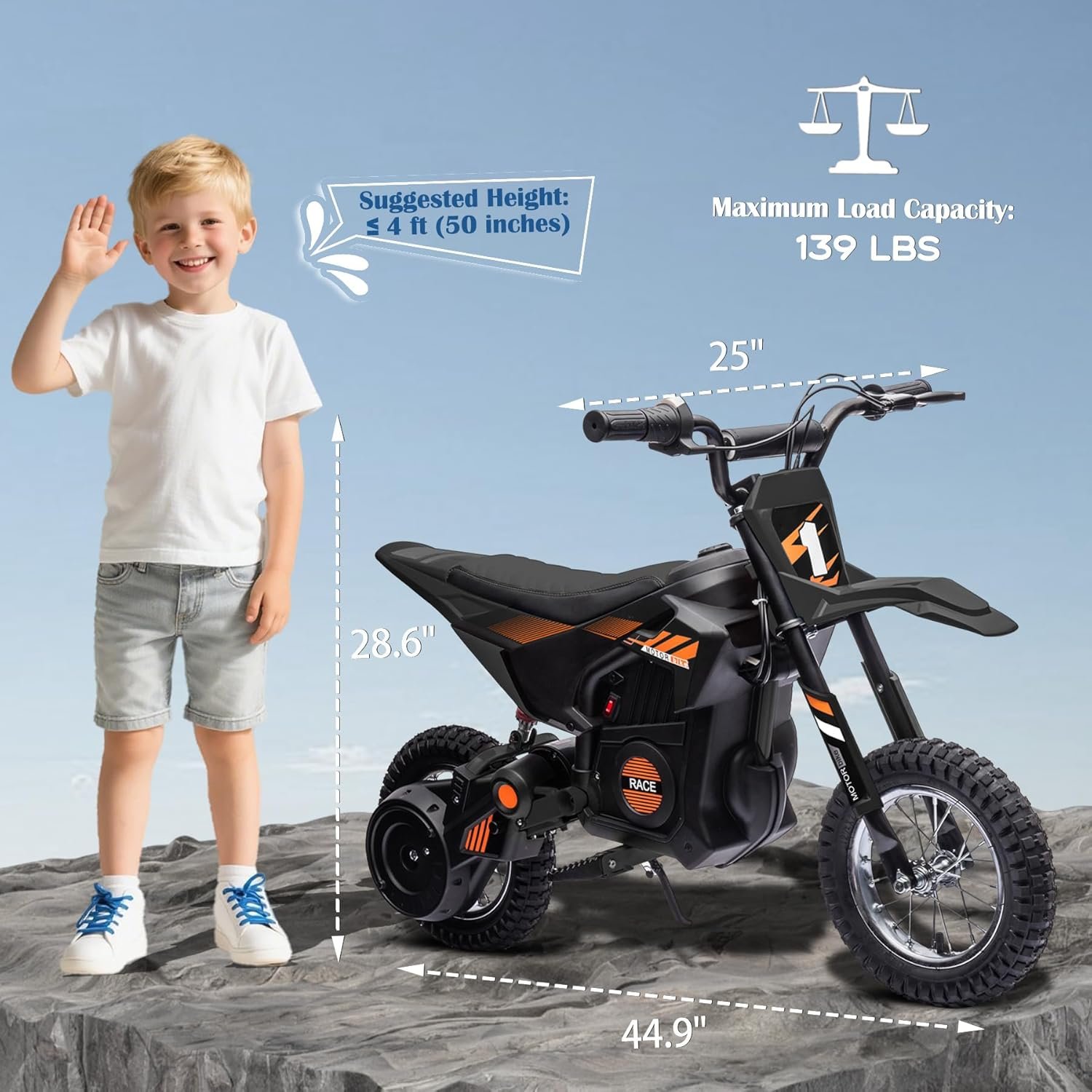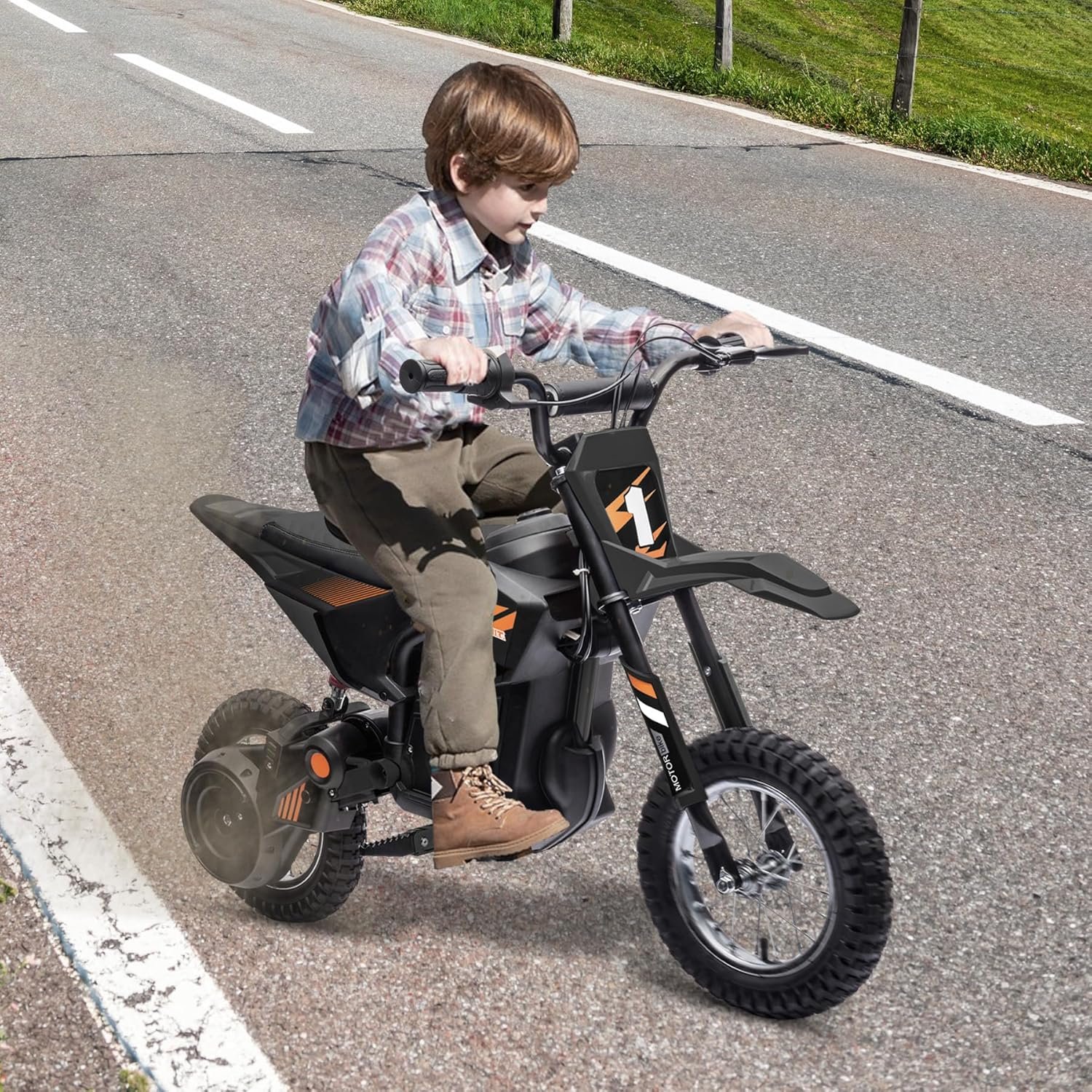 JoyWheel 24V Electric Dirt Bike for Kids, 250W Motor, 13.6MPH Off-Road Motorcycle with Rear Suspension, Leather Seat, Anti-Slip Tires – Suitable for Kids (Black)