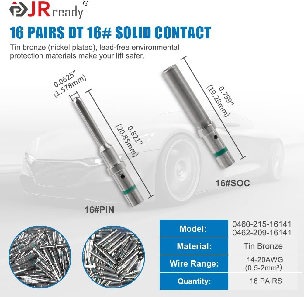 JRready ST6318-201 DT Deutsch Connector Kit – 8 Sets 2 Pin Gray Waterproof DT Connectors with Size 16 Solid Contacts 14-20AWG