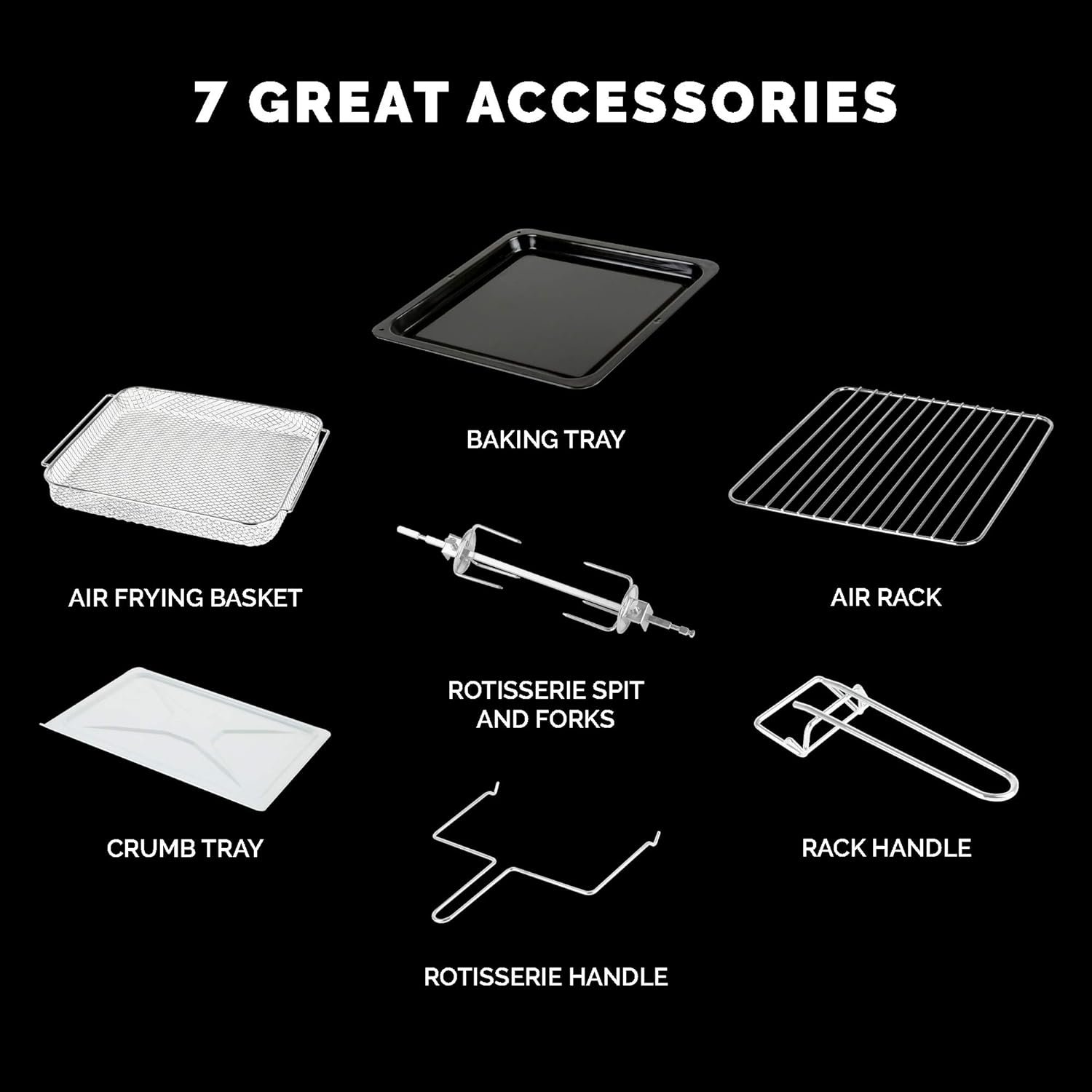 Kalorik MAXX Air Fryer Oven, 26 Quart 9-in-1 Countertop Toaster Oven and Air Fryer Combo – Fry, Bake, Roast, Rotisserie, & More, Large Glass French Doors & 7 Accessories, 1700-Watts, Stainless Steel