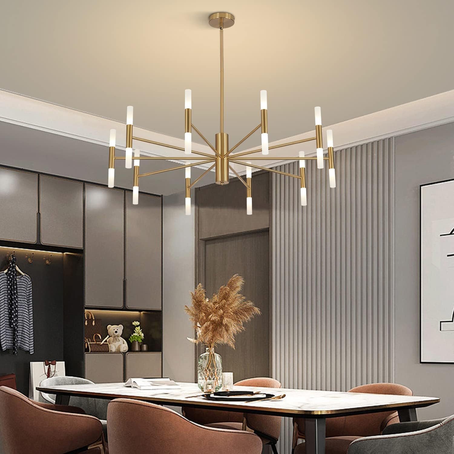 KCO Lighting Mid Century Modern Chandelier Brass Gold Chandelier Light Fixture Vintage Bedroom Chandelier Sputnik Flush Mount Ceiling Light Large Chandeliers for High Ceilings