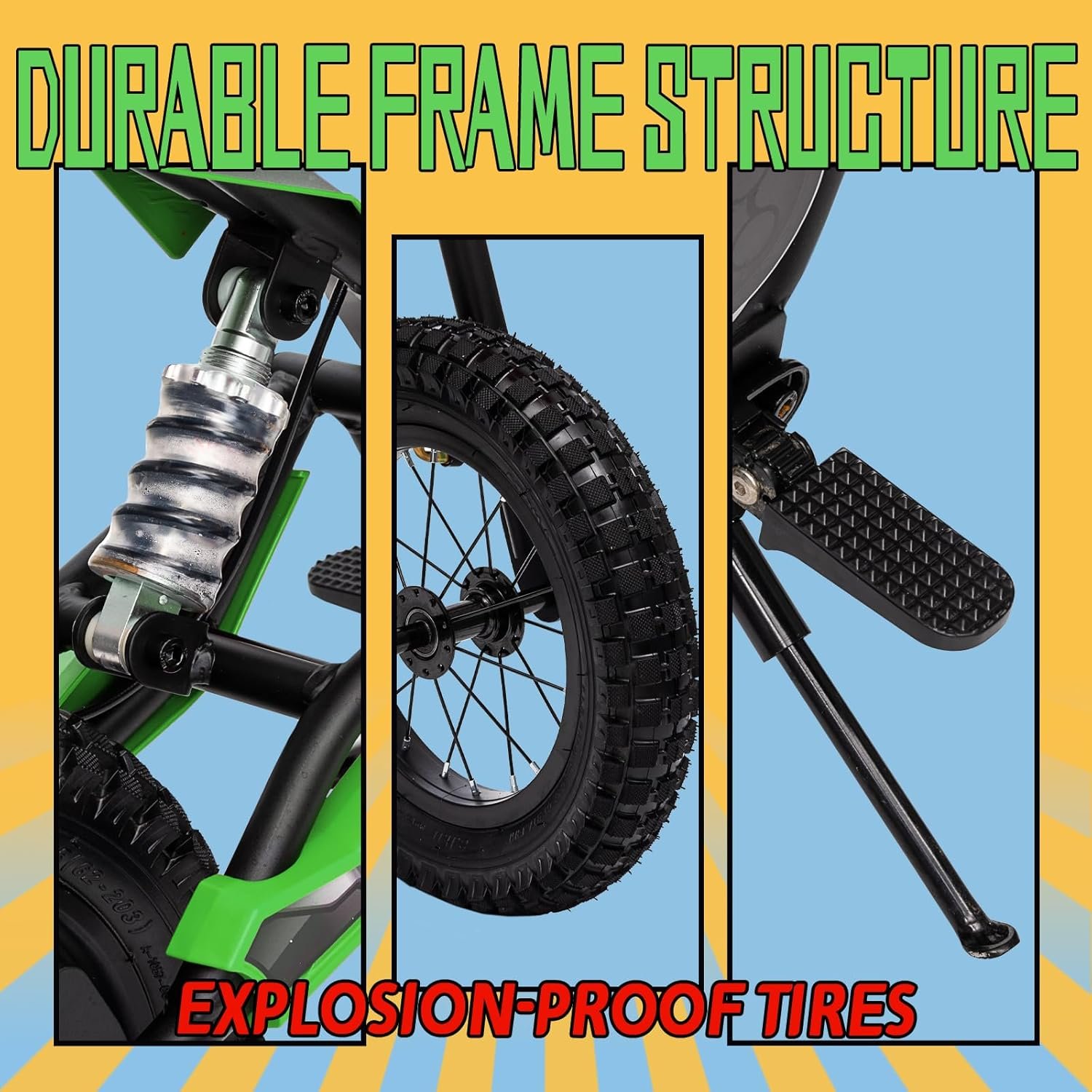 KerryYoo 36V 350W Electric Dirt Bike for Kids 8-14, Up to 16MPH Off-Road Electric Motorcycle with Explosion-Proof Tires, Twist Grip Throttle, Spring Suspension,Kids Ride On Dirtbike(Green)
