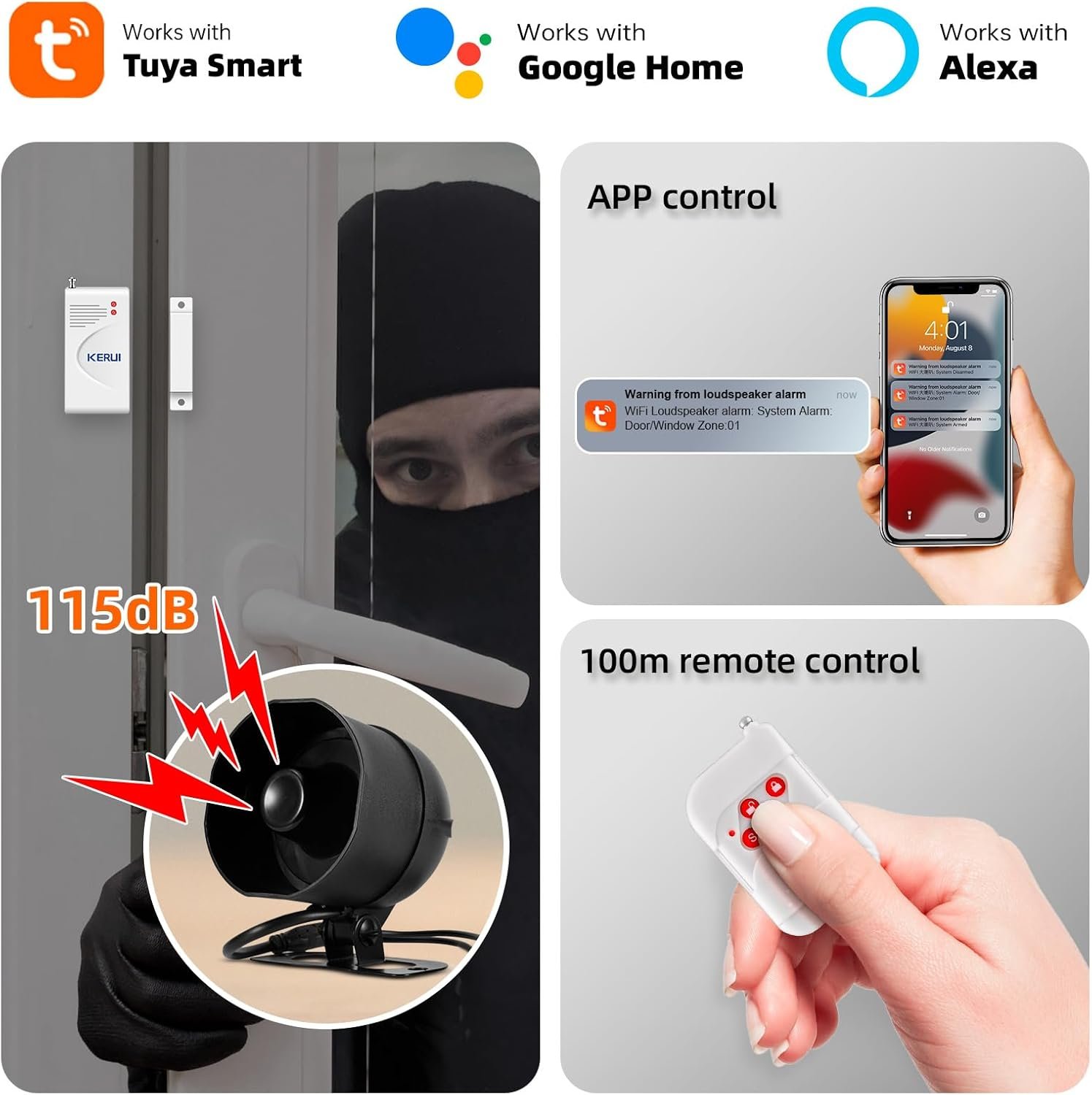KERUI WiFi Home Security Alarm System 8-Piece kit Door Alarm System DIY Siren Door/Window Sensors Remotes Burglar Alarm for House Apartment Office,Compatible with Alexa Google Home