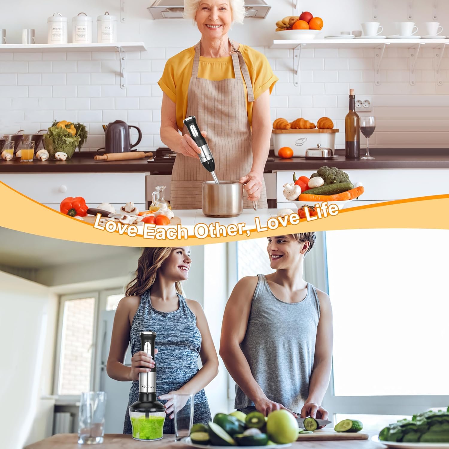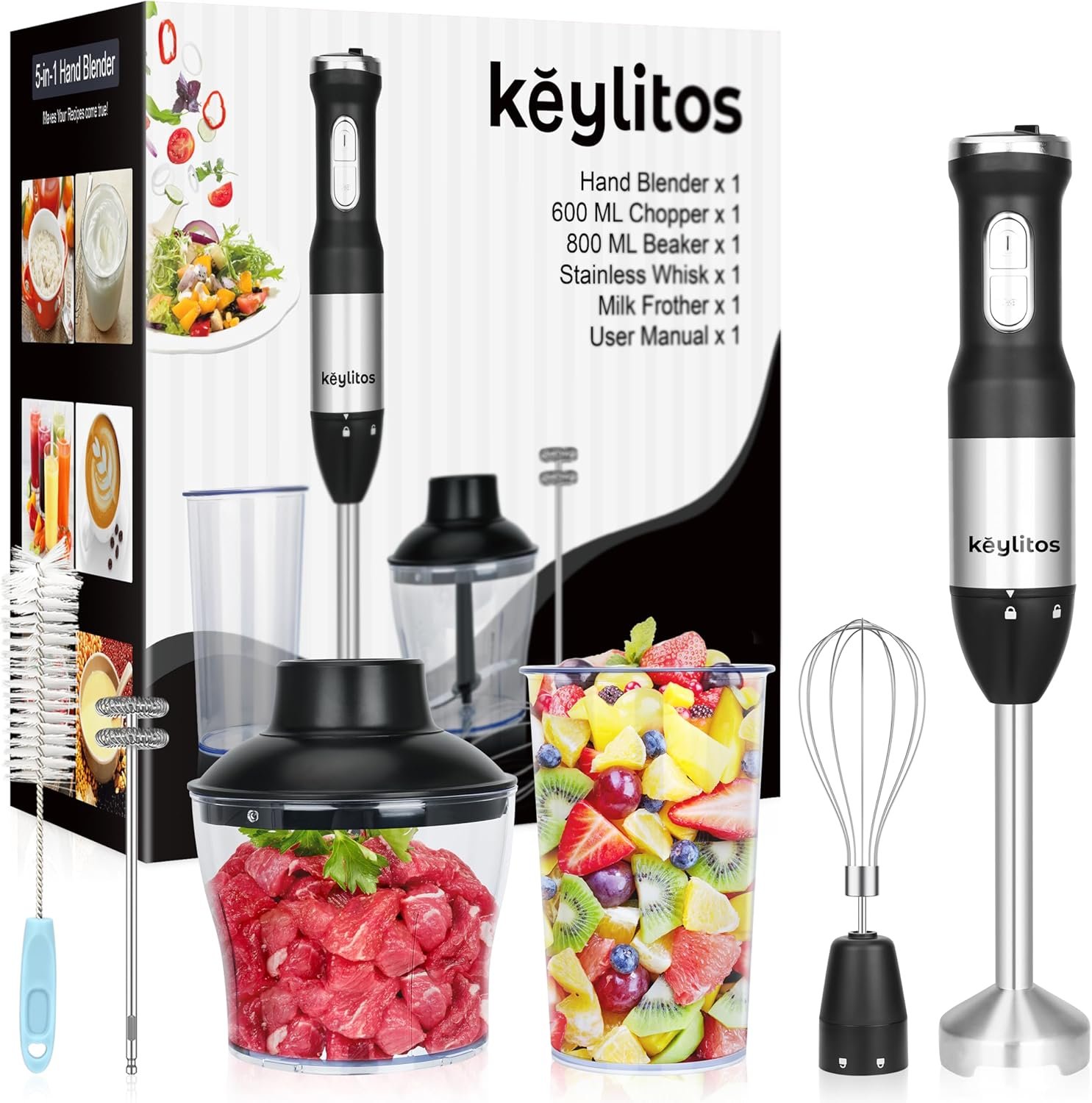 Keylitos 5 in 1 Immersion Hand Blender Mixer, [Upgraded] Handheld Stick Blender with 600ML Chopper, 800ML Beaker, Whisk and Milk Frother for Smoothie, Baby Food, Sauces Red,Puree, Soup (Black)