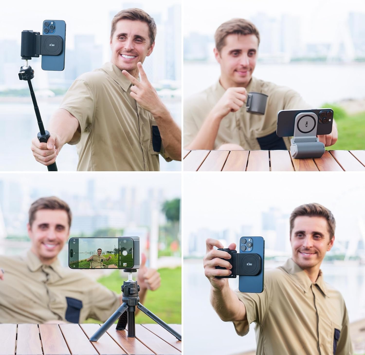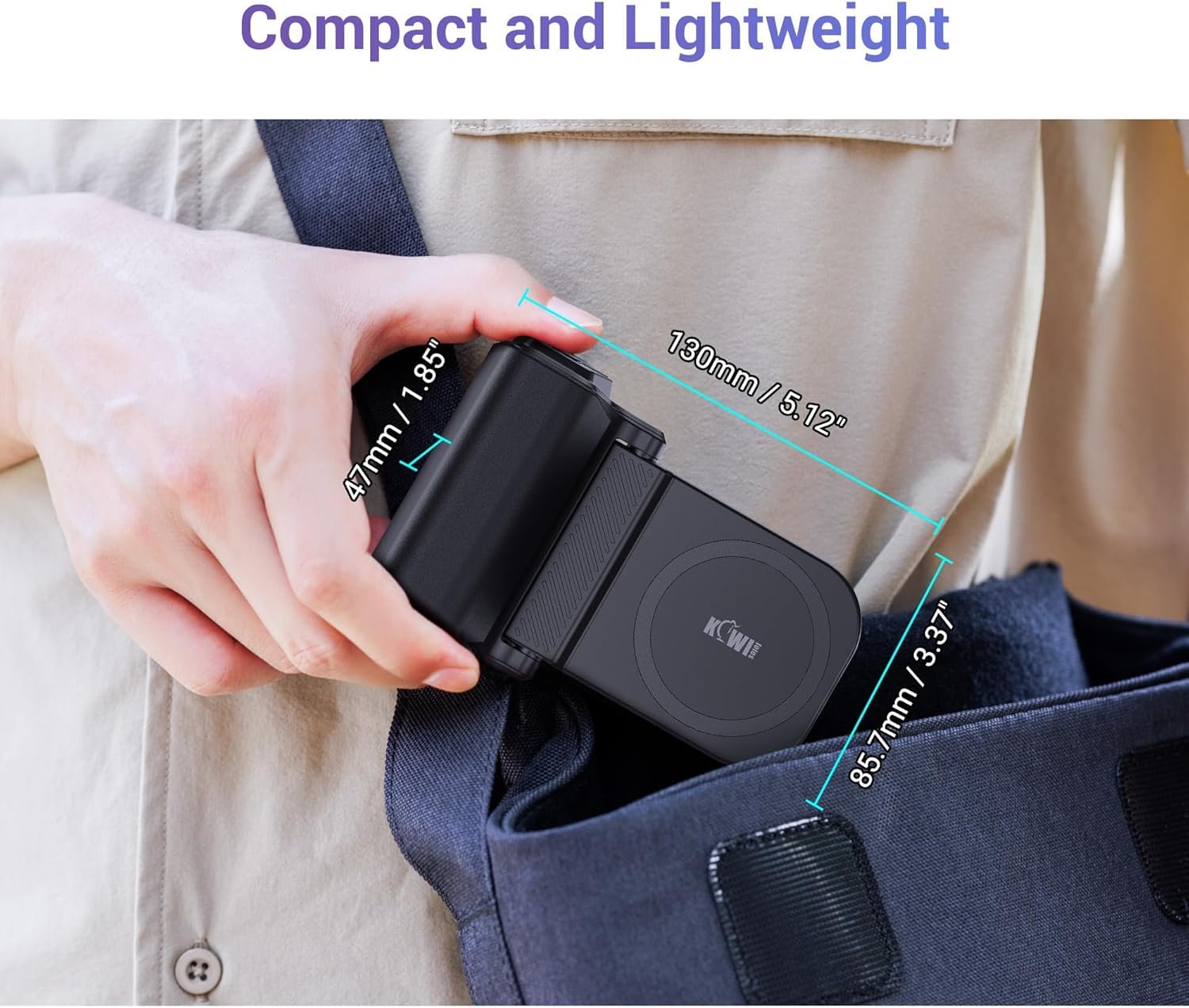 KIWIFOTOS Magnetic Phone Camera Grip for iPhone 17 Magsafe Handle with Bluetooth Remote & Tripod Mount Adapter for iPhone 16 15 Pro Max Samsung Smartphone Vlog Video Shooting