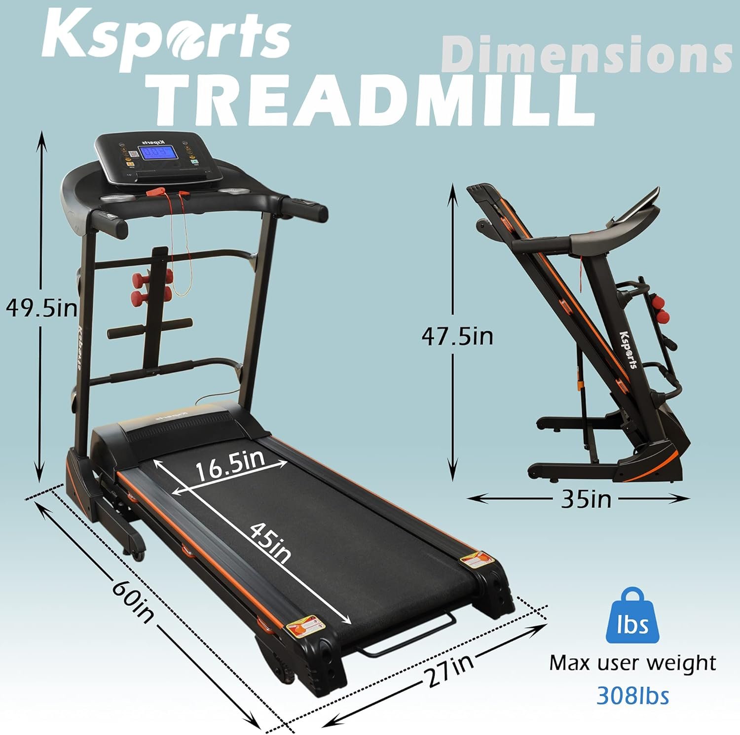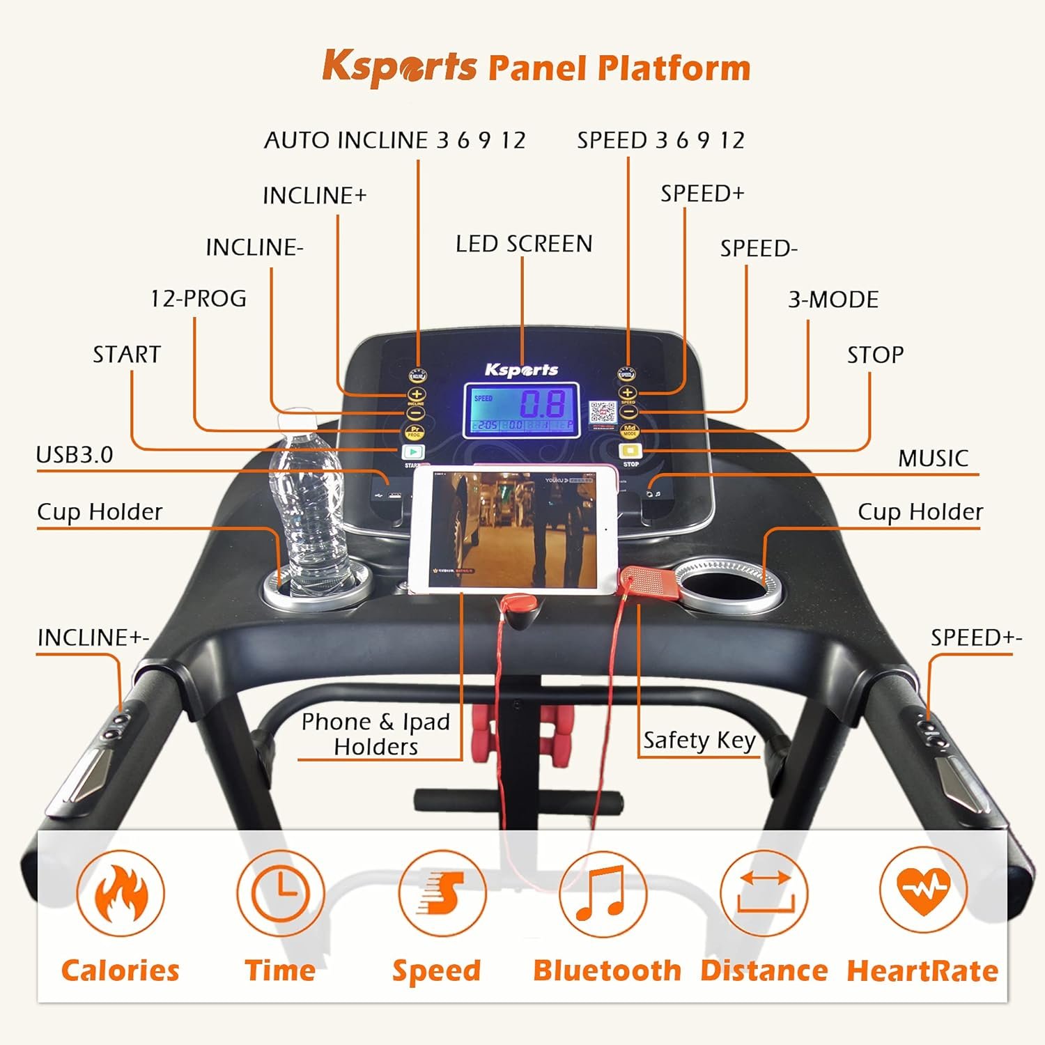 Ksports Foldable 16.5 Inch Cardio Fitness Portable Treadmill with Bluetooth Connectivity, LCD Display, and Tracking Apps for Home Gym Equipment, Black