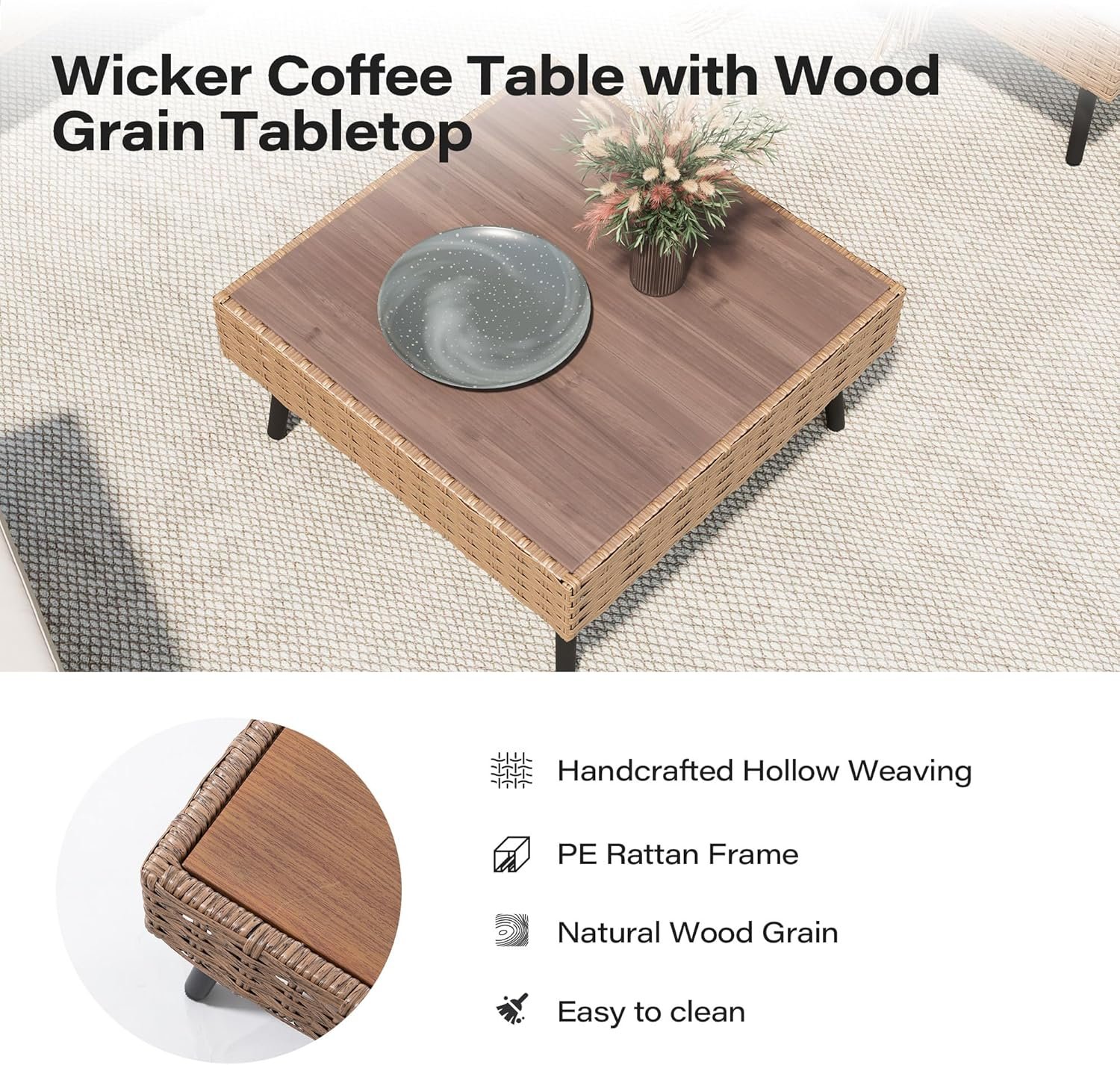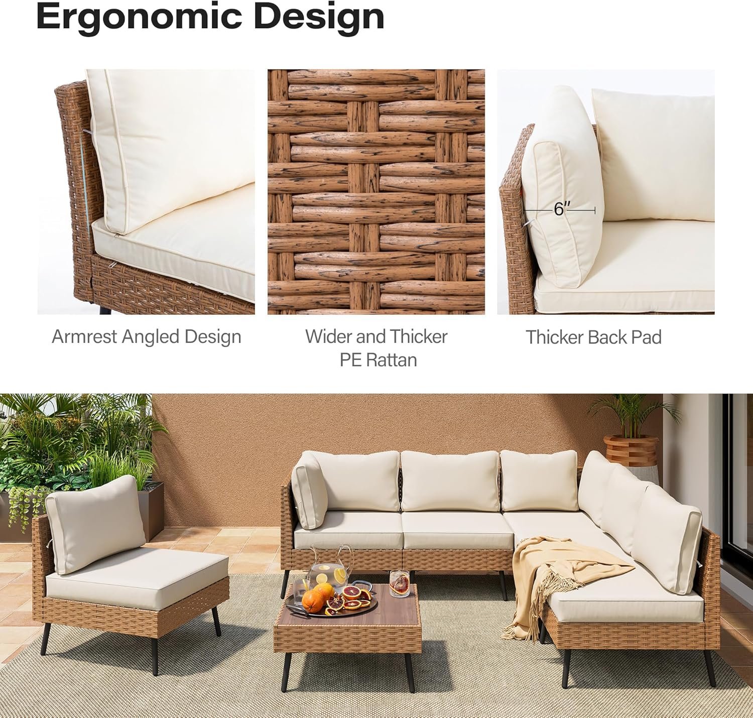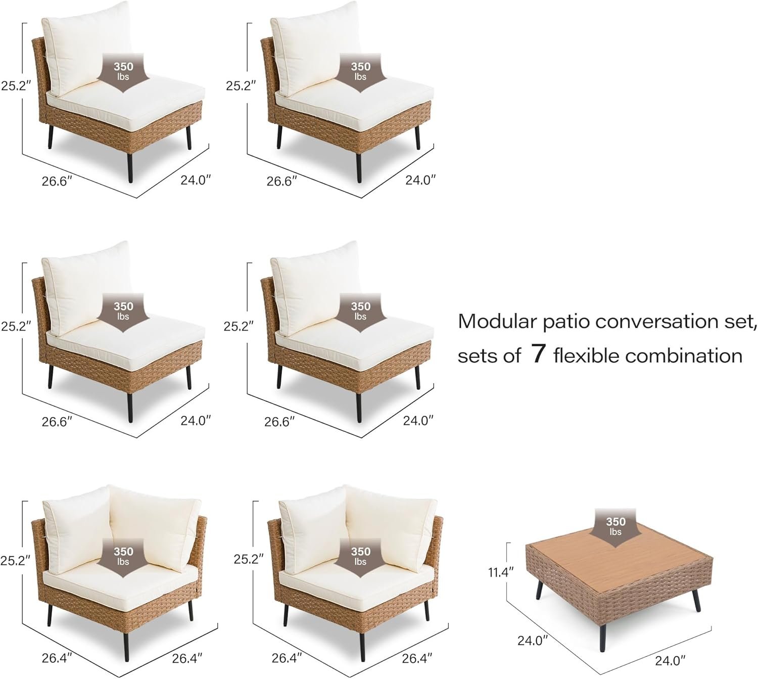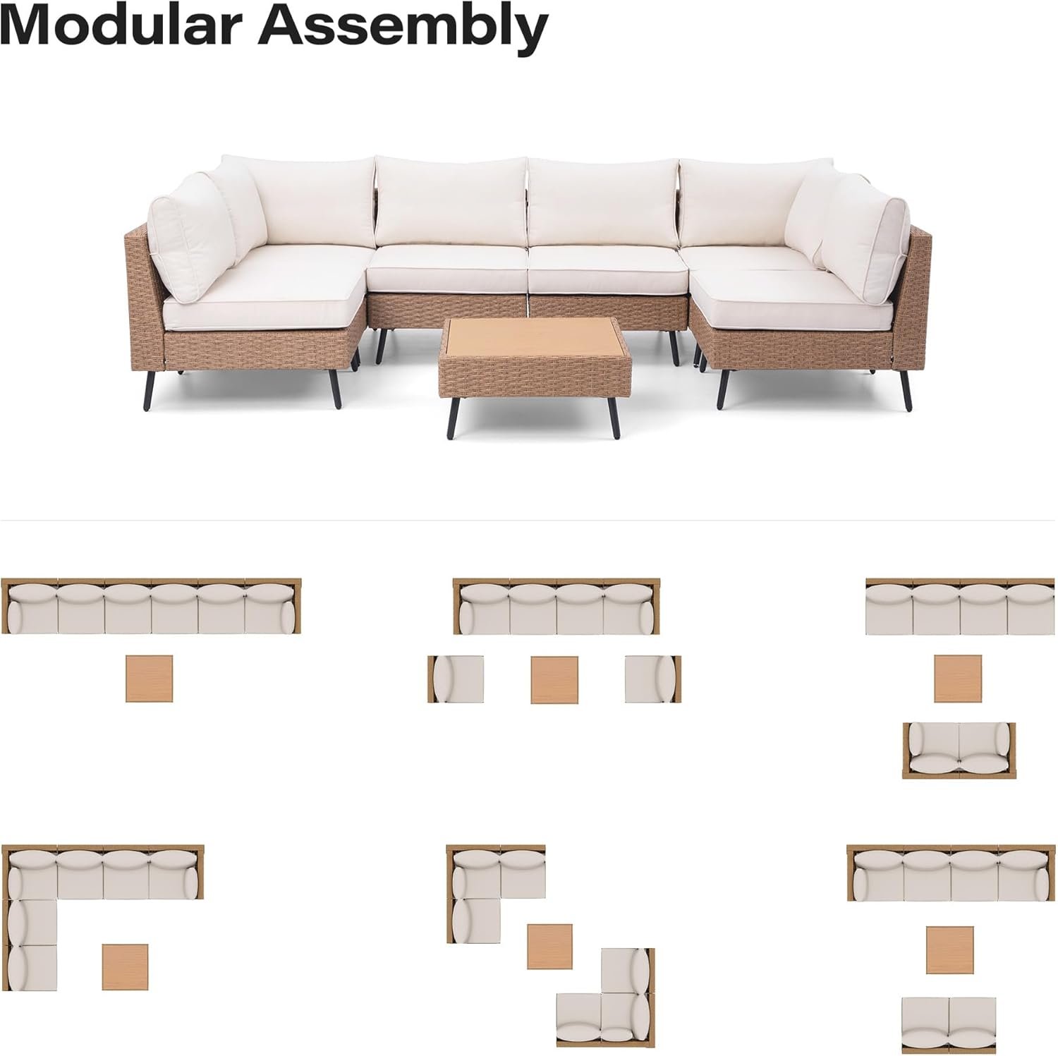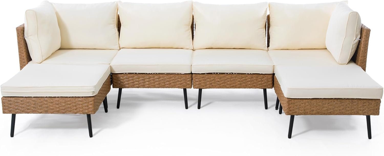 LAUSAINT HOME 7-Piece Patio Conversation Set, Modular Outdoor Sofa with Thick Cushions, All-Weather PE Rattan Sectional Seating for Garden, Backyard & Deck, Beige