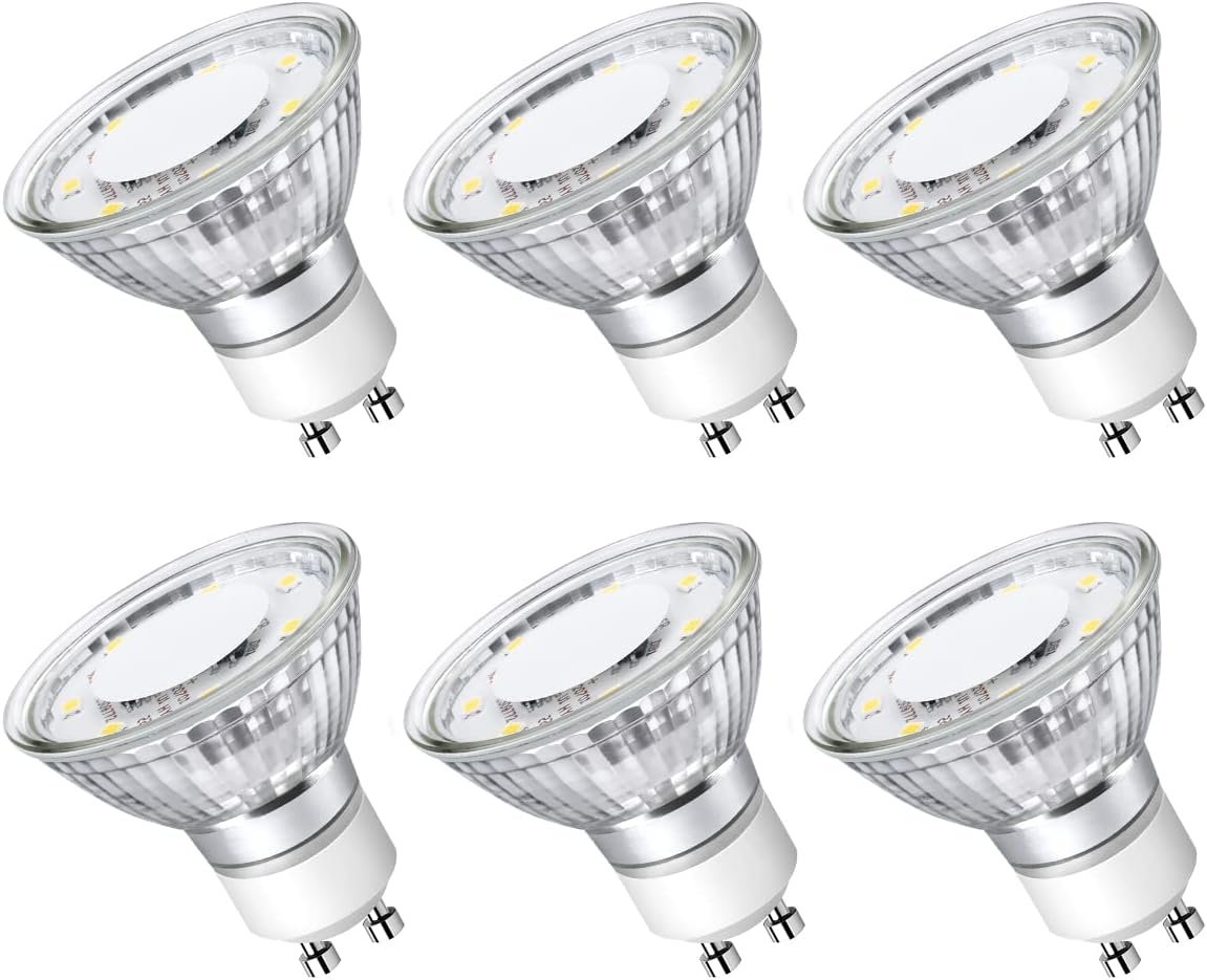 Lepro Non-Dimmable GU10 LED Light Bulbs, 5000K Daylight White GU10 Bulb Replacement for Recessed Track Lighting, 4W LED Bulbs with 100°Flood Beam for Kitchen, Range Hood, Living Room, Bedroom, 6 Pack