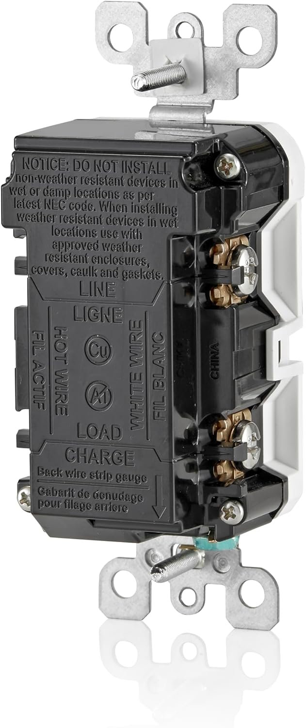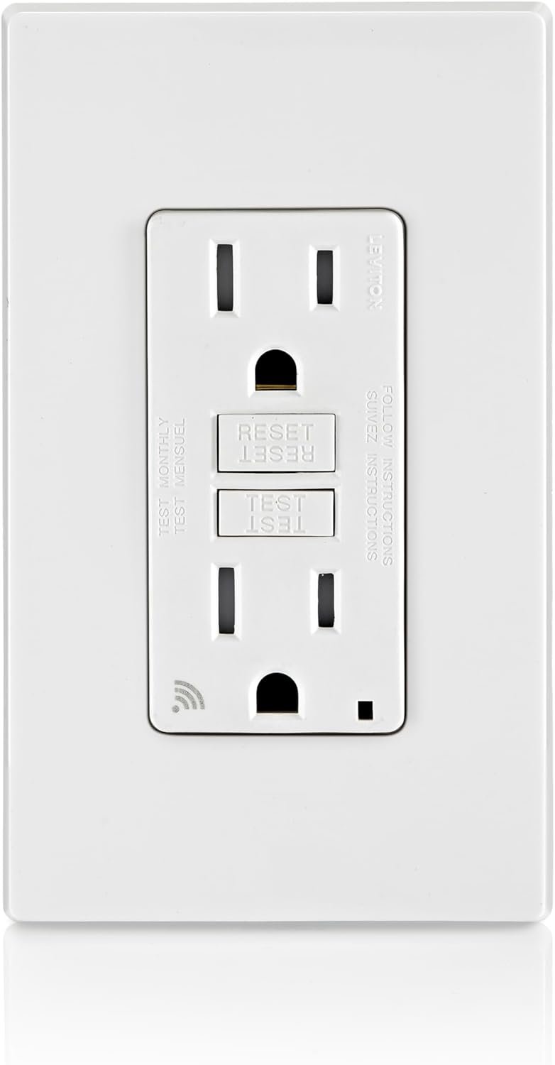 Leviton Smart GFCI, 15 Amp, Self Test, Tamper-Resistant with LED Indicator Light, Send Notifications Directly to Your Smartphone, D2GF1-KW, White