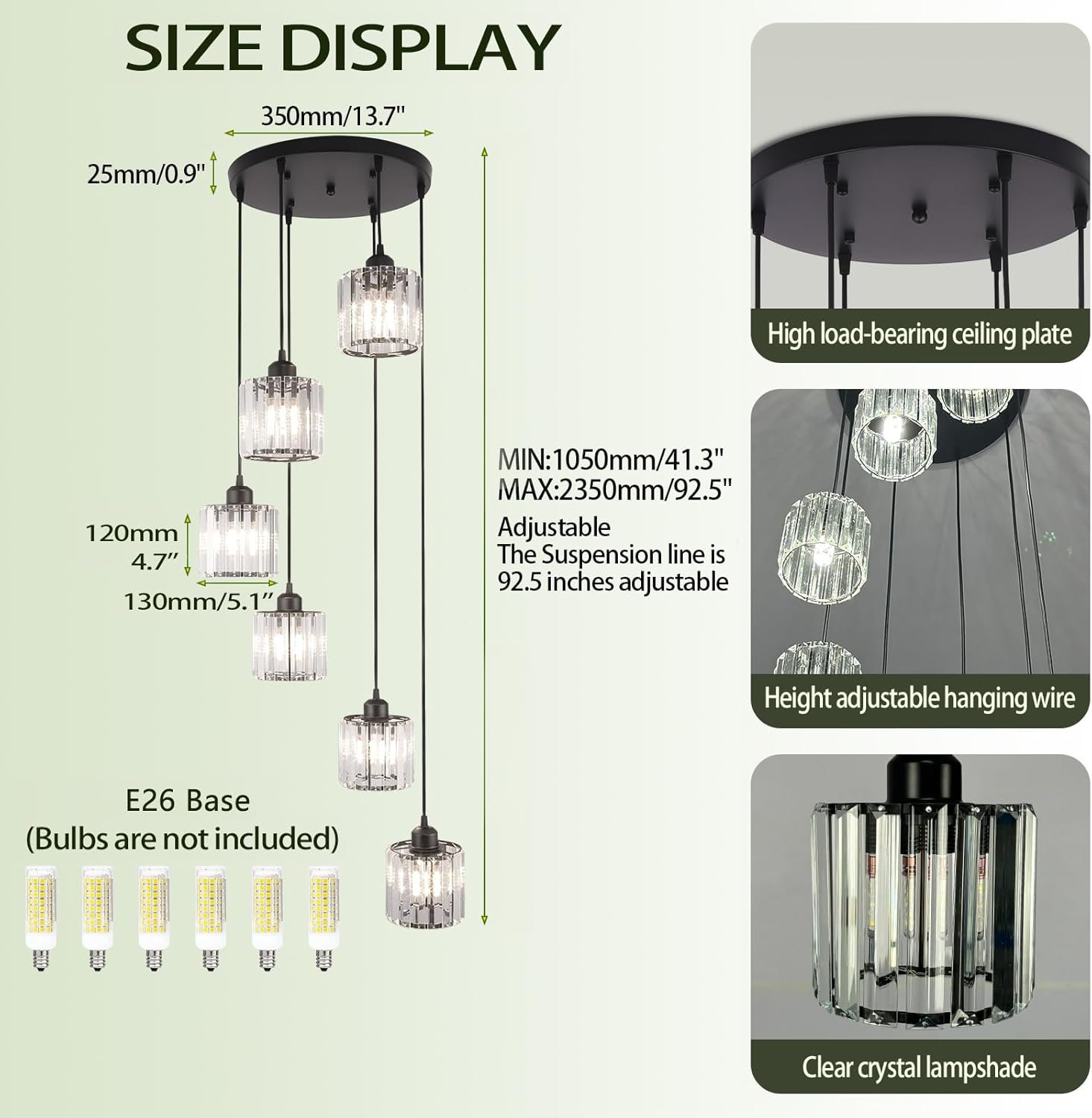 Long Chandelier for High Ceilings Modern Crystal Long Pendant Light Raindrop Drop Lamp Hanging Flush Mount Chandelier Ceiling Light for Staircase Foyer Living Room Entryway 6 Lights