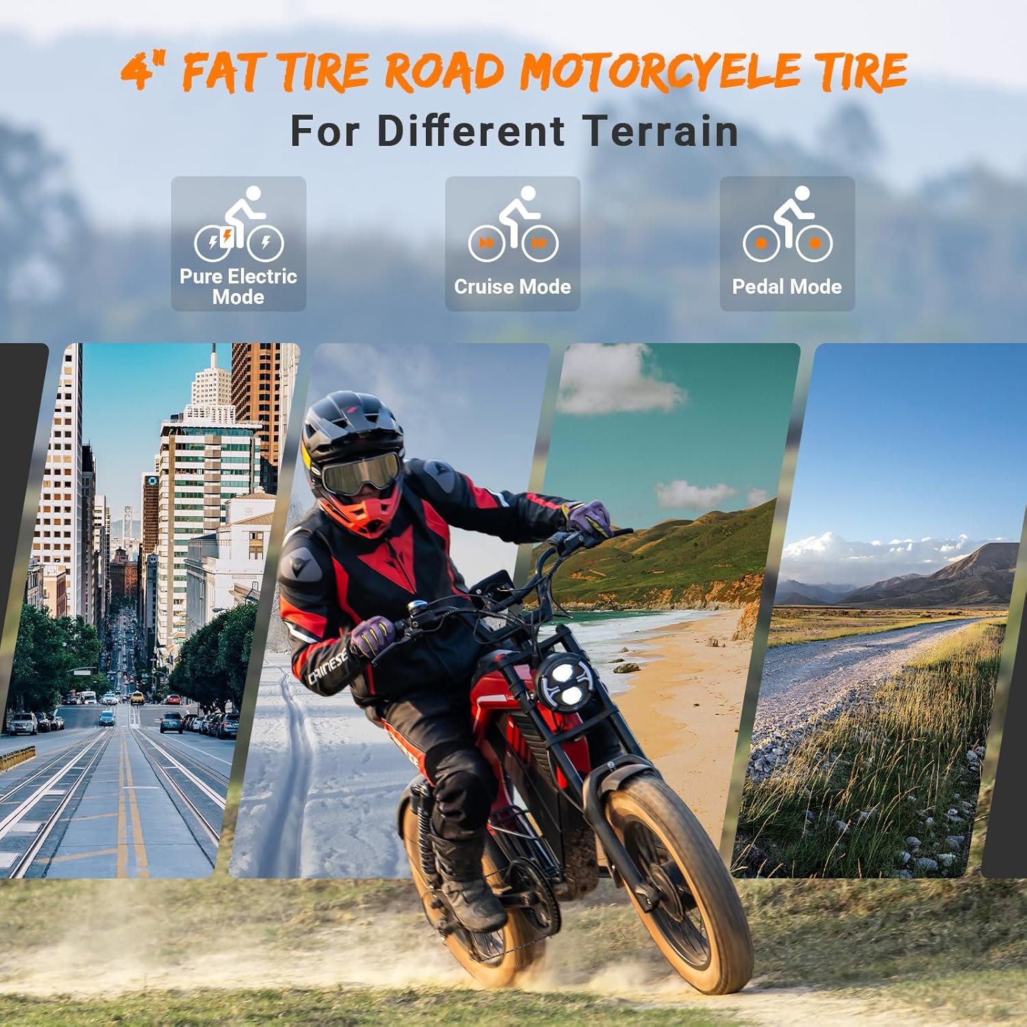 Electric Bike,1500W/2000W,48V,18Ah E Bikes for Adults Electric 60+ Mile 32MPH Top Speed Electric Motorcycle All Terrain Fat Tire Electric Dirt Bike G50