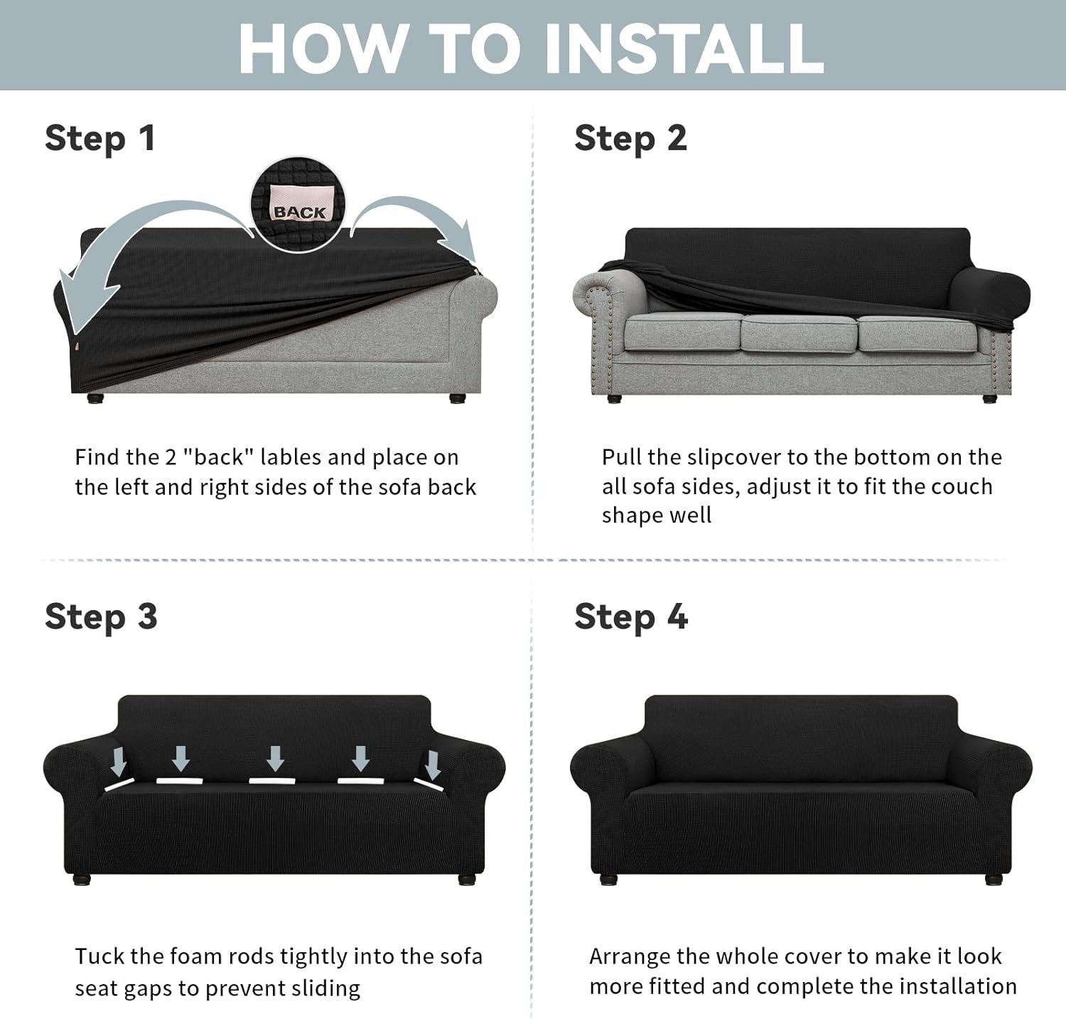 LURKA Stretch Sofa Slipcovers Couch Covers for 3 Cushion Couch Sofa Pet Friendly Non Slip Sofa Cover Washable Furniture Protector with Elastic Bottom (Large, Black)