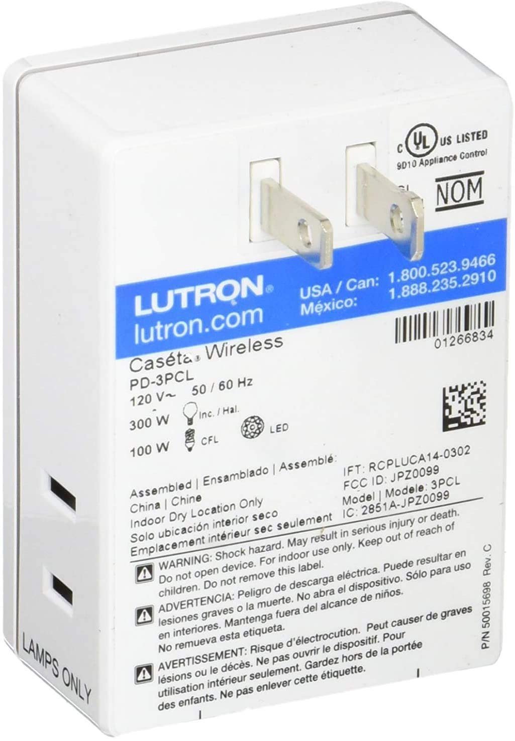 Lutron Caseta Plug-In Smart Lamp Dimmer Switch (Lutron Hub Required), Smart Light Switch Dimmer for Floor & Table Lamps, LED Lights, White (PD-3PCL-WH)