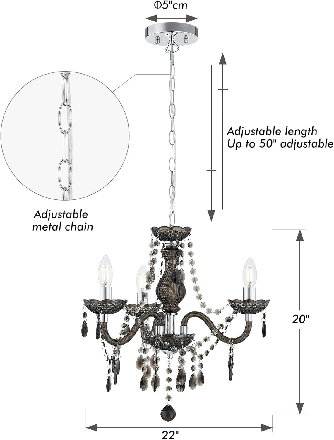 Luvkczc Black Chandelier Small Crystal Chandeliers Lighting Mini Acrylic Chandelier 3 Light Modern Pendant Light Fixtures for Restaurant, Bar, Dining Room, Bathroom
