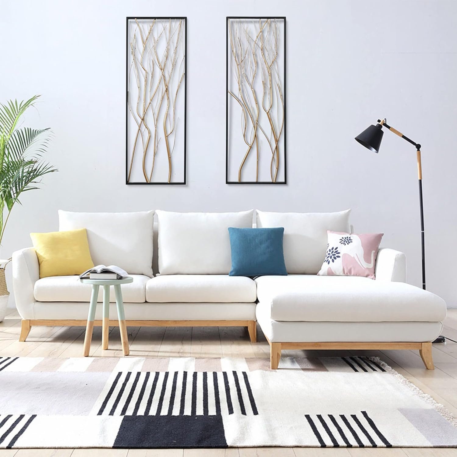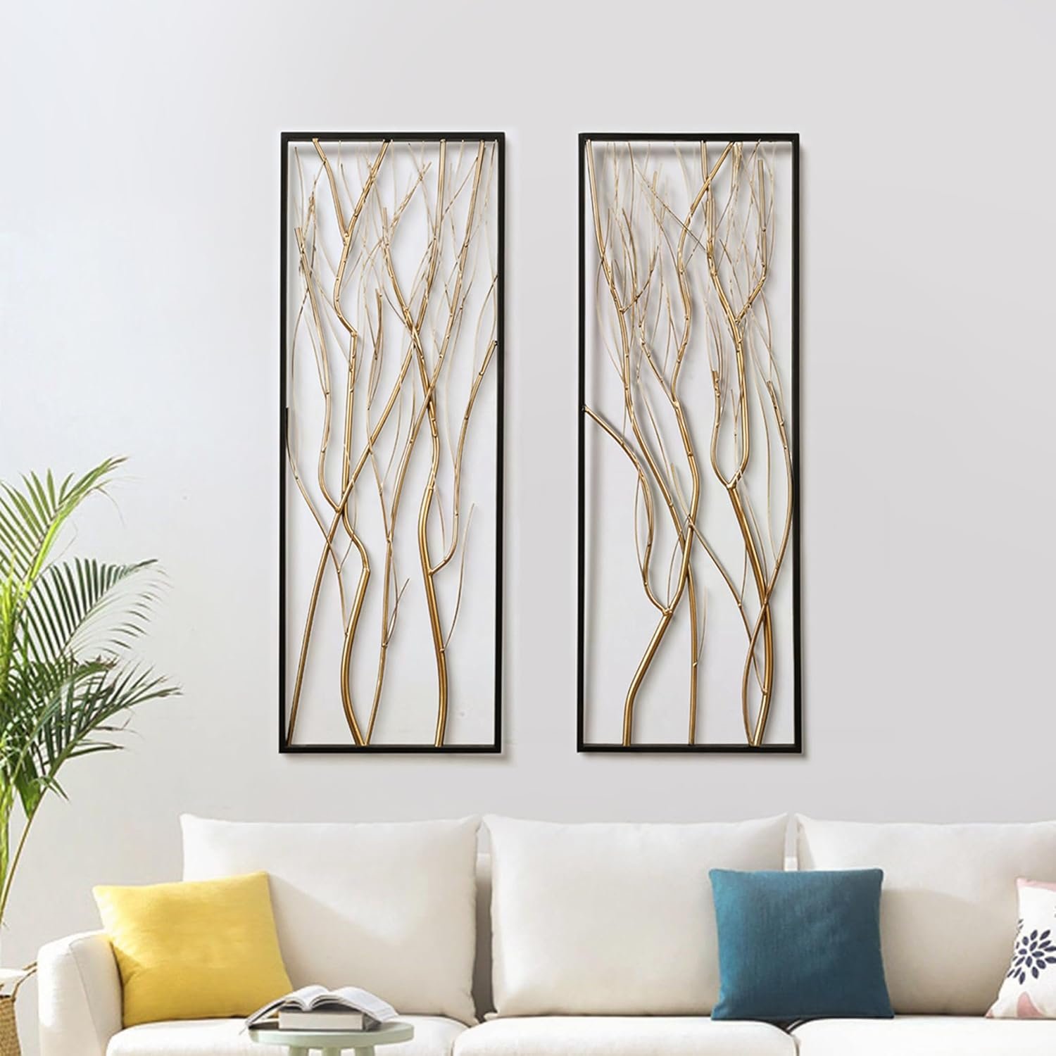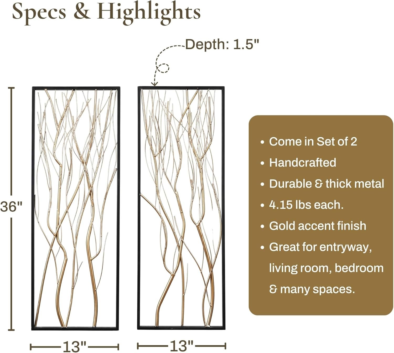 LuxenHome Metal Wall Decor, 36″ Luxury Living Room Metal Wall Art, Set of 2 Gold Wall Decor, Bedroom Wall Decorations with Frame for Home, Bedroom, Kitchen, Office, Dining Room, Gold/Black