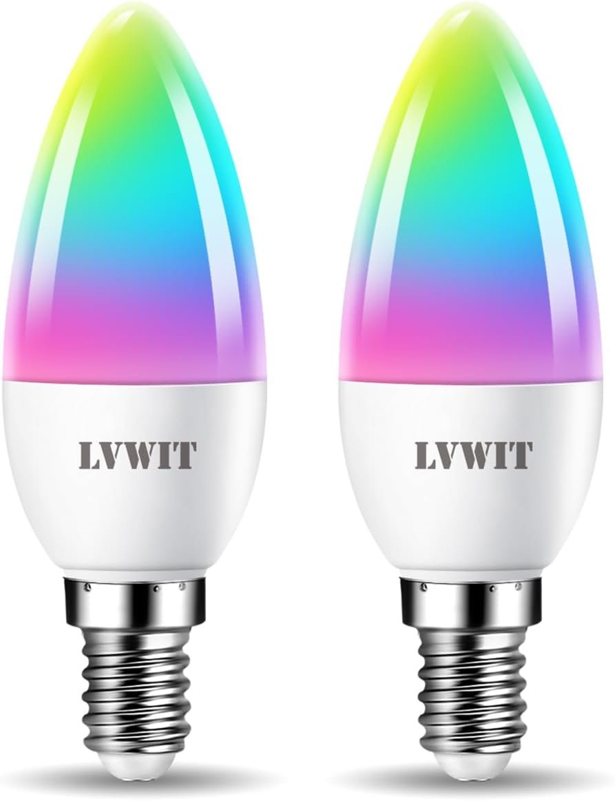 LVWIT Smart Light Bulb, WiFi Chandelier LED Bulb, E12 Base, 4.9W, 470Lm, 2Pk, Color Changing, Dimmable, Compatible with Alexa, Google Home, No Hub Required, B11, Warm White, 50000hrs Life
