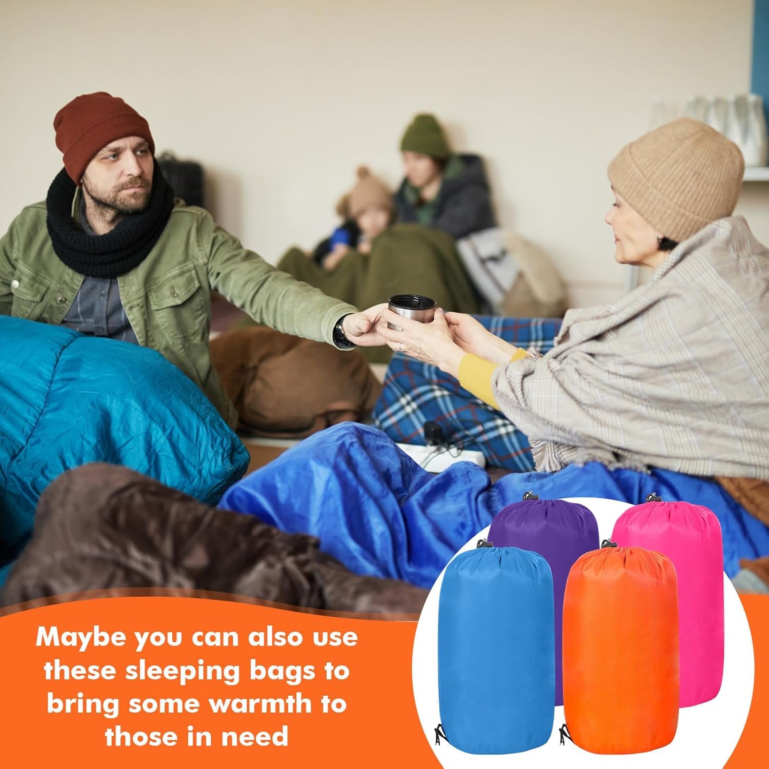Macarrie 4 Pcs Bulk Sleeping Bags for Homeless Donation Shelter Adults 0 Degree Waterproof Backpack Bags with Compression Sack for Cold Weather Emergency Hiking Camping Warm