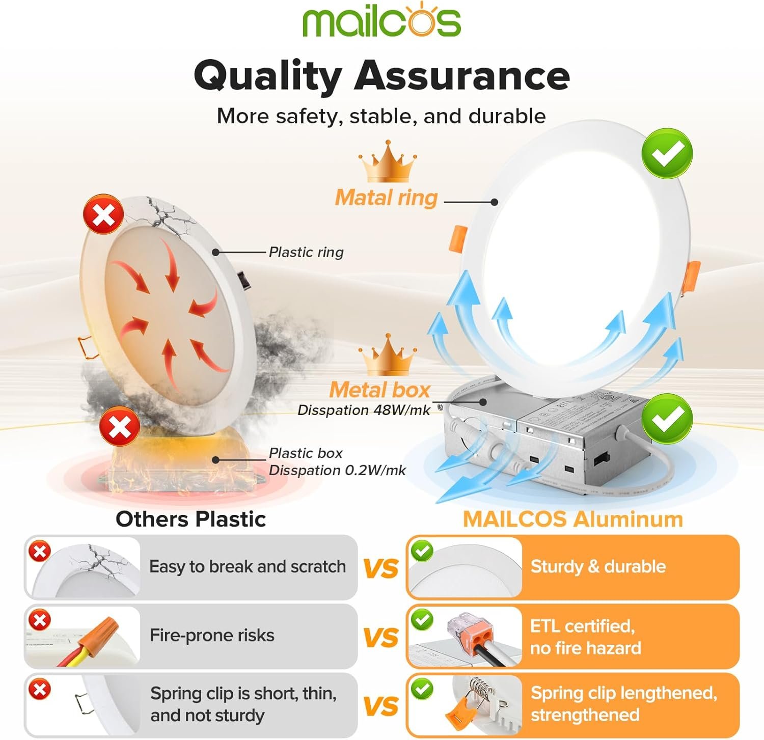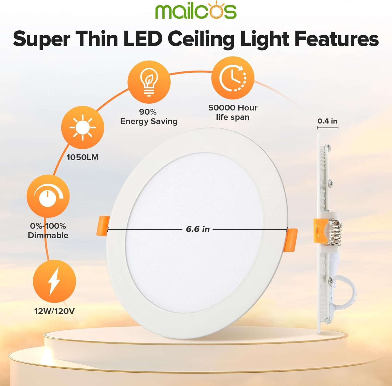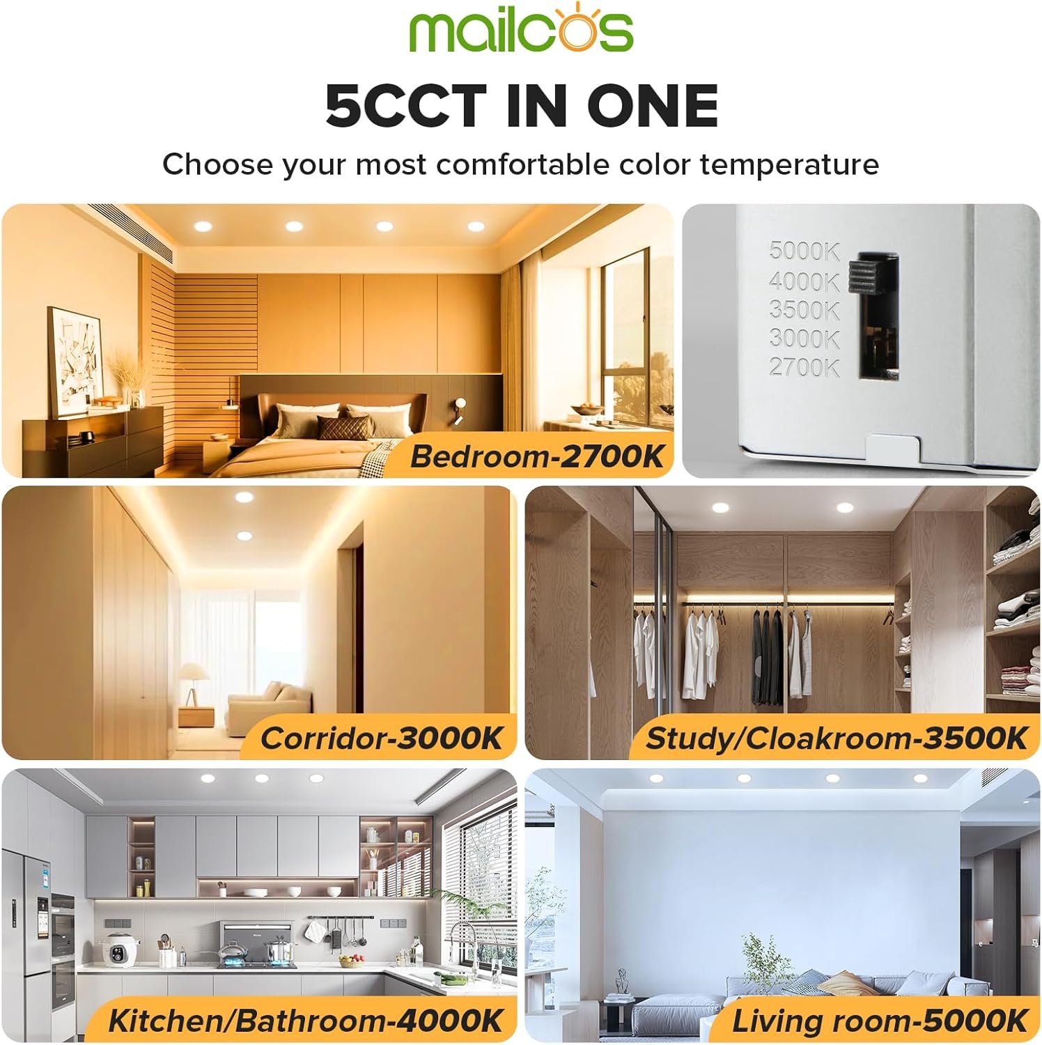 MAILCOS 12 Pack 6 Inch 5CCT Ultra-Thin LED Recessed Ceiling Light with Junction Box, 2700K-5000K Selectable, 1050LM High Brightness, Dimmable Canless Wafer Downlight, 12W 120V, ETL