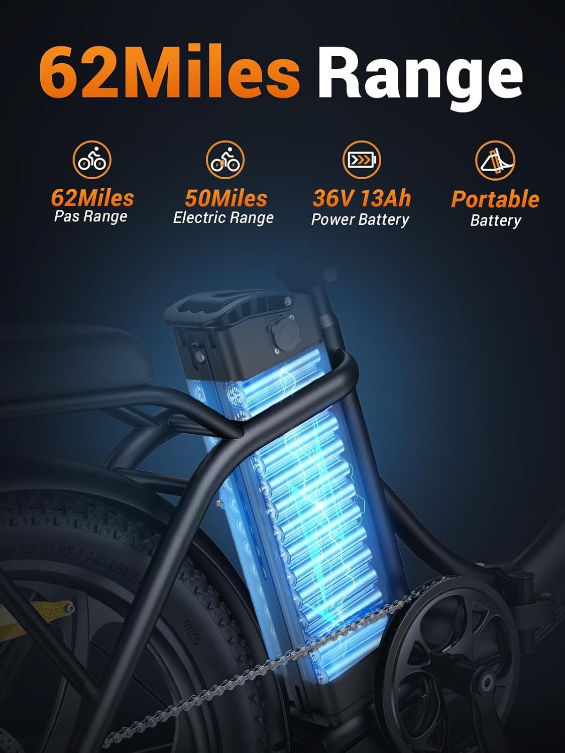 MilePort 1 Folding Electric Bike for Adults | 700W Peak Motor | 20MPH Top Speed | 62 Miles Range | 468Wh Removable Battery | 20″x3.0″ Fat Tires | 7-Speed Folding Commuter E-Bike