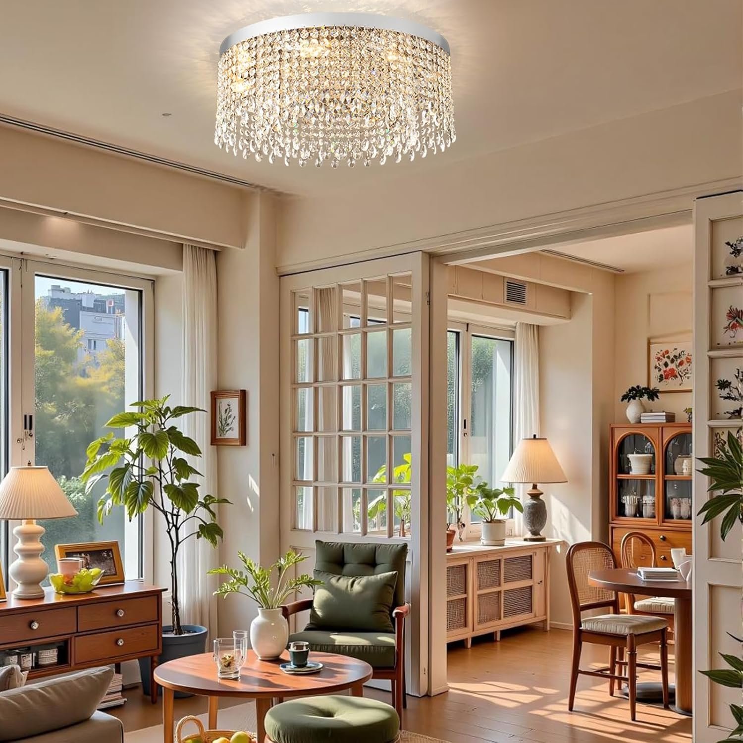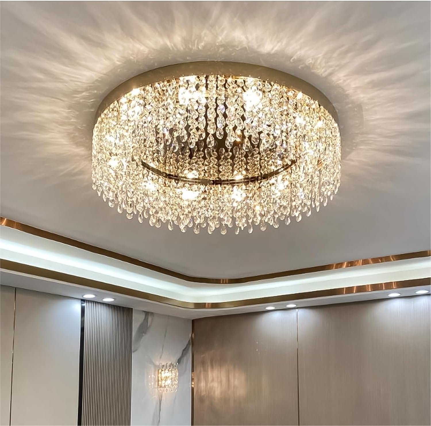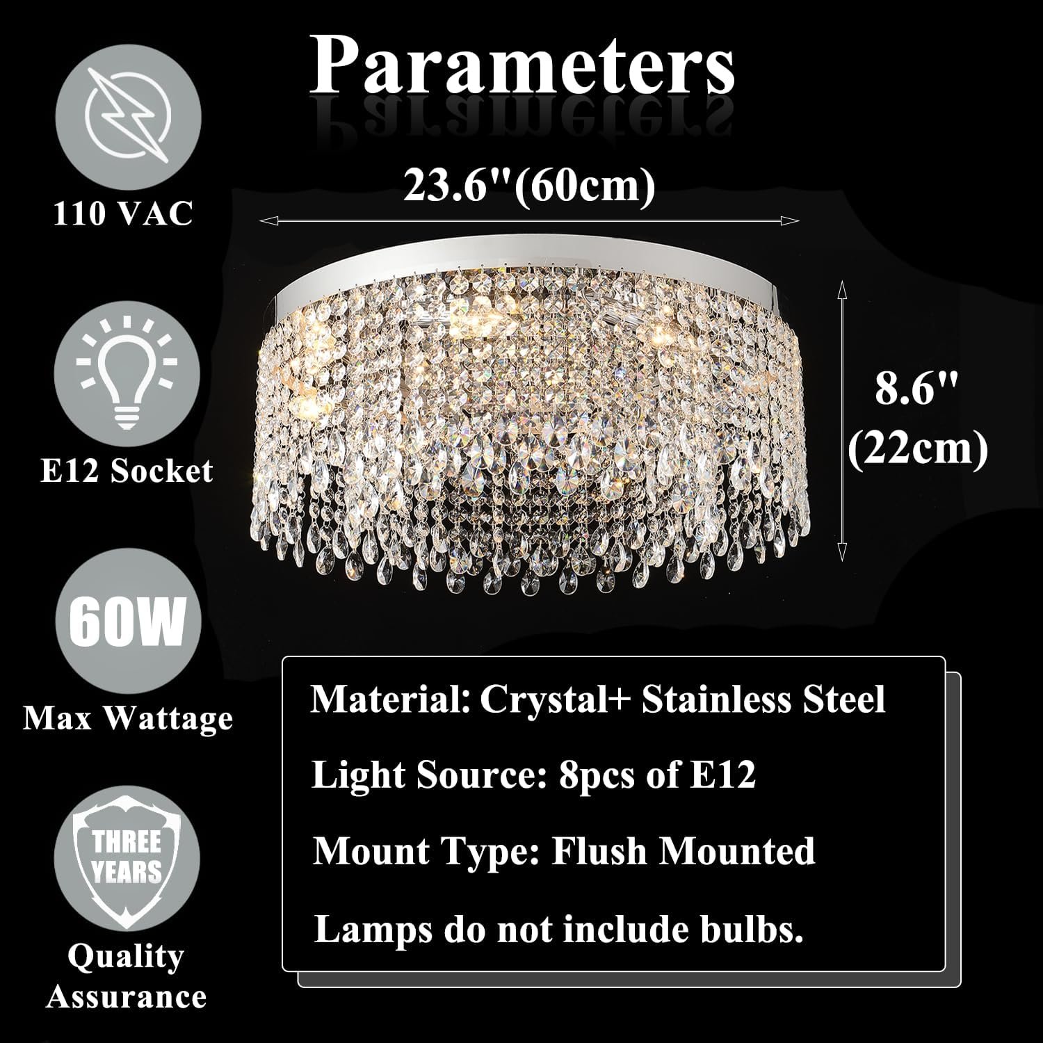 Modern Crystal Chandelier 8-Lights Large Raindrop Crystal Chandeliers Flush Mount Ceiling Light Fixture for Living Room Dining Room Bedroom