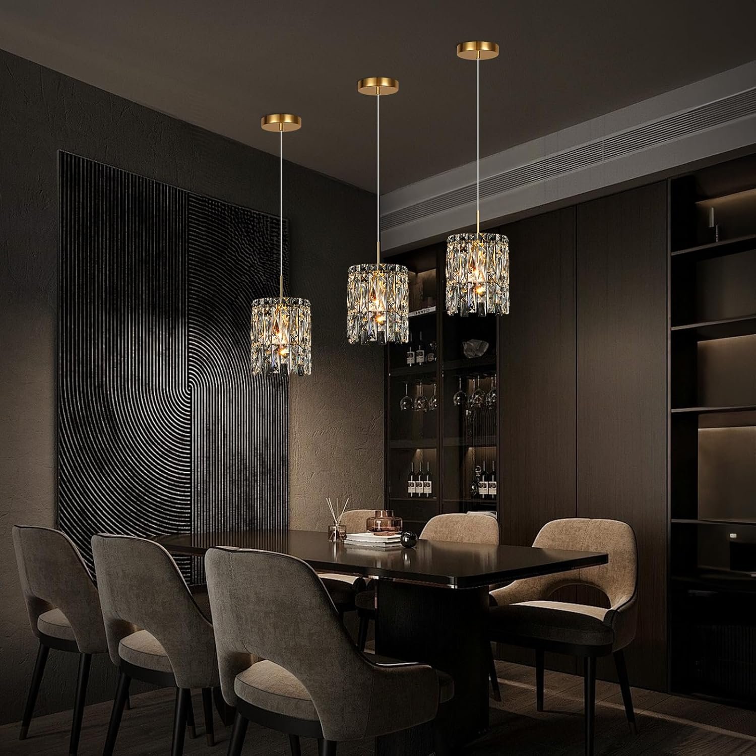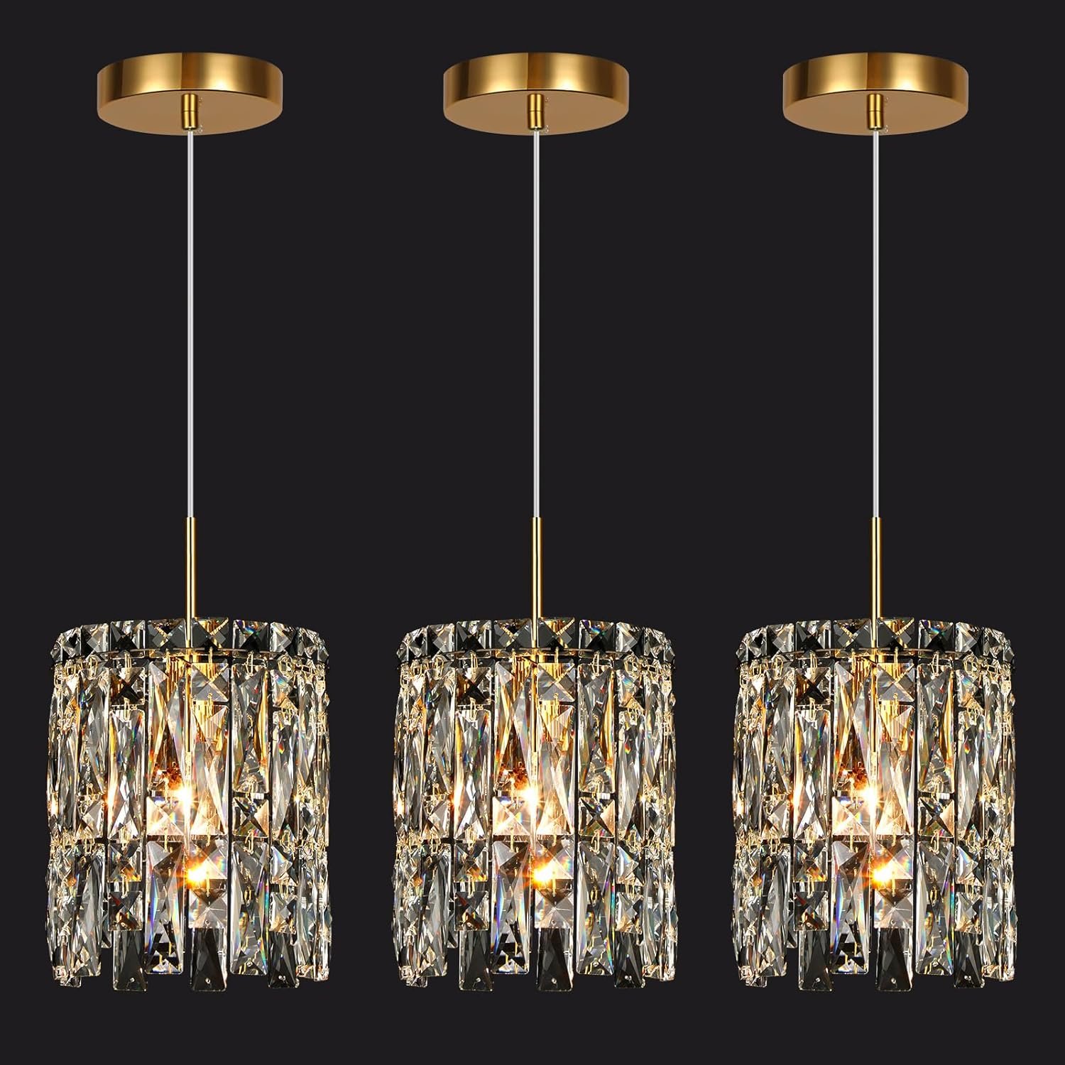 Modern K9 Crystal Pendant Lights Kitchen Island Set of 3,Gold Chandeliers for Dining Room Light Fixtures Over Table,Hanging Chandelier for Kitchen Island Entryway Bathroom BedHead Bedroom