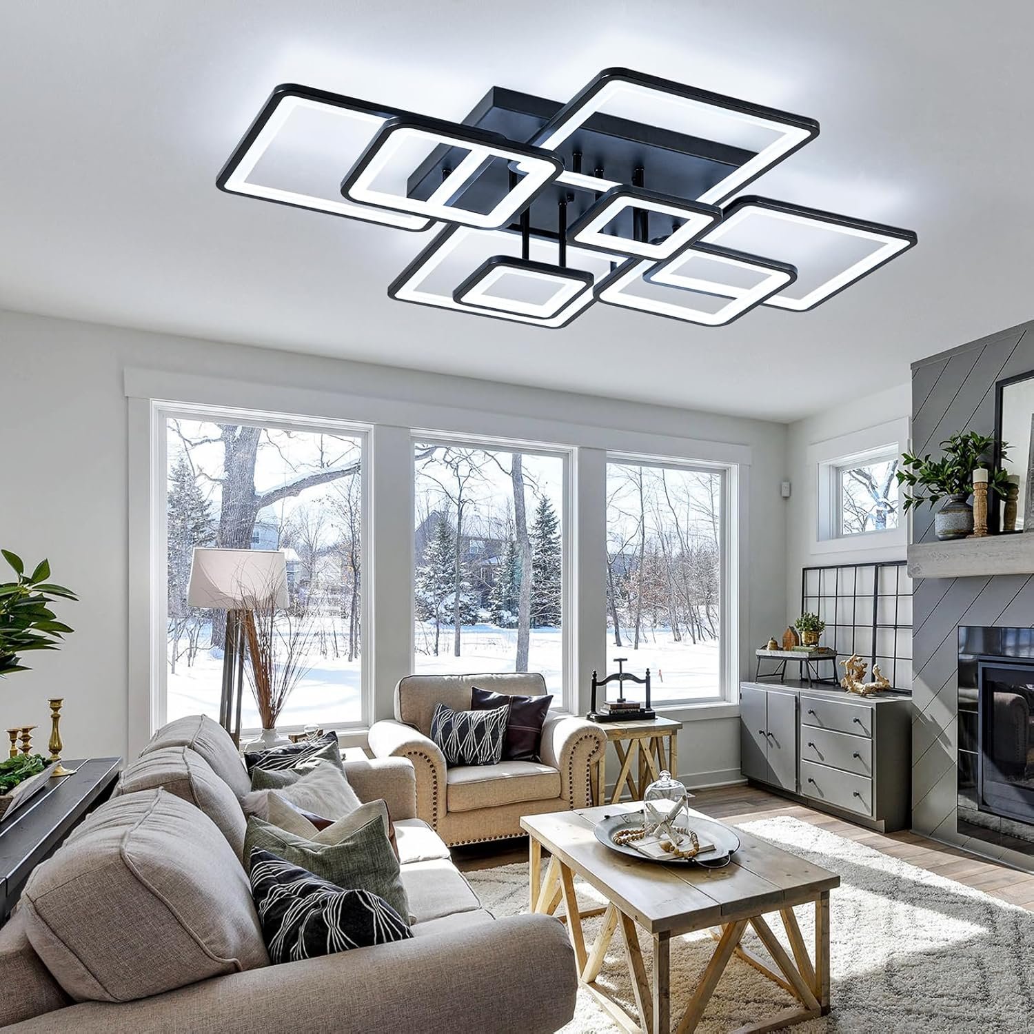 25″ Modern Black Chandelier for Dining Room (6-Light, 25-Inch), Geometric Black Dining Room Light Fixture Over Table, Industrial Metal Hanging Pendant Lights for Kitchen Island, Entryway, Foyer
