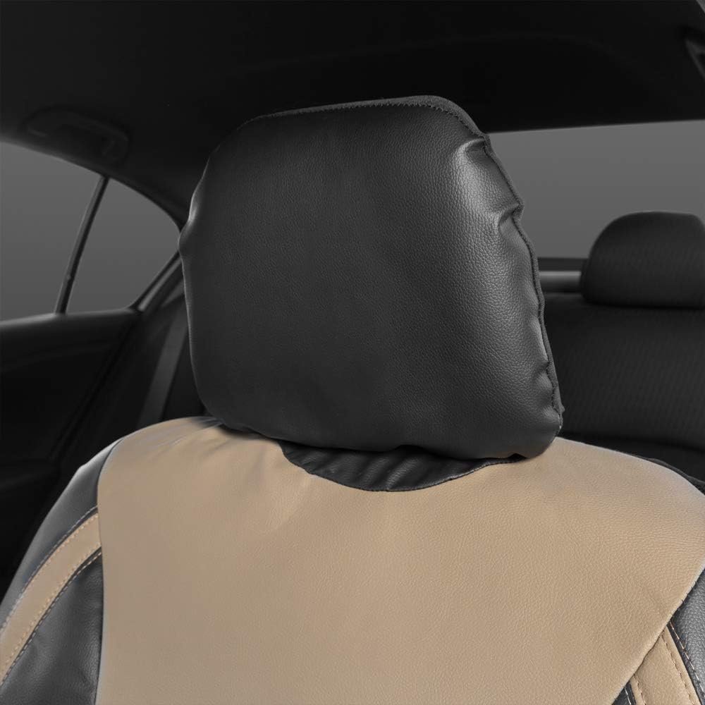 Motor Trend Beige Faux Leather Car Covers for Front Seats – Premium Automotive Bucket Seat Covers, Made for Vehicles with Removable Headrests, Interior Covers for Truck Van SUV