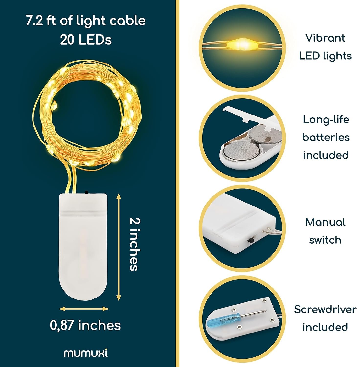 MUMUXI 12 Pack 7.2ft Fairy Lights Battery Operated String Lights, 20 Mini LEDs for Centerpiece Table Decorations, Wedding Party Bedroom Mason Jar Christmas Decor, Warm White