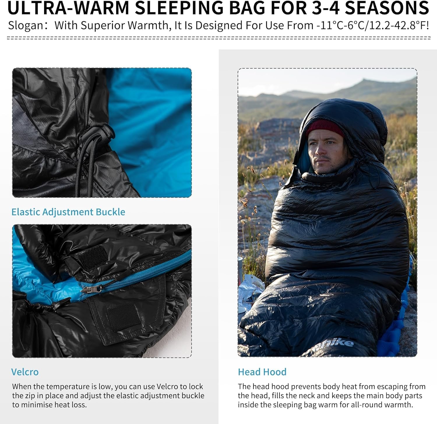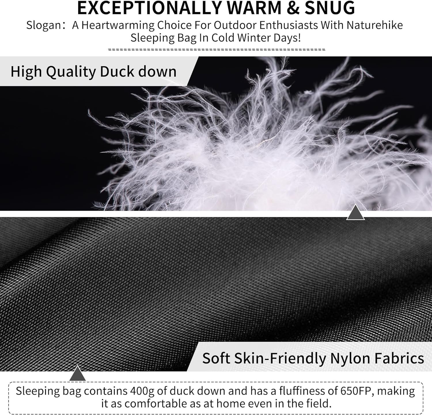 Naturehike Ultralight Down Sleeping Bag, 650FP Backpacking Sleeping Bag for Adults, 42℉ Waterproof Sleeping Bags for Camping, Hiking, Traveling with Compression Sack