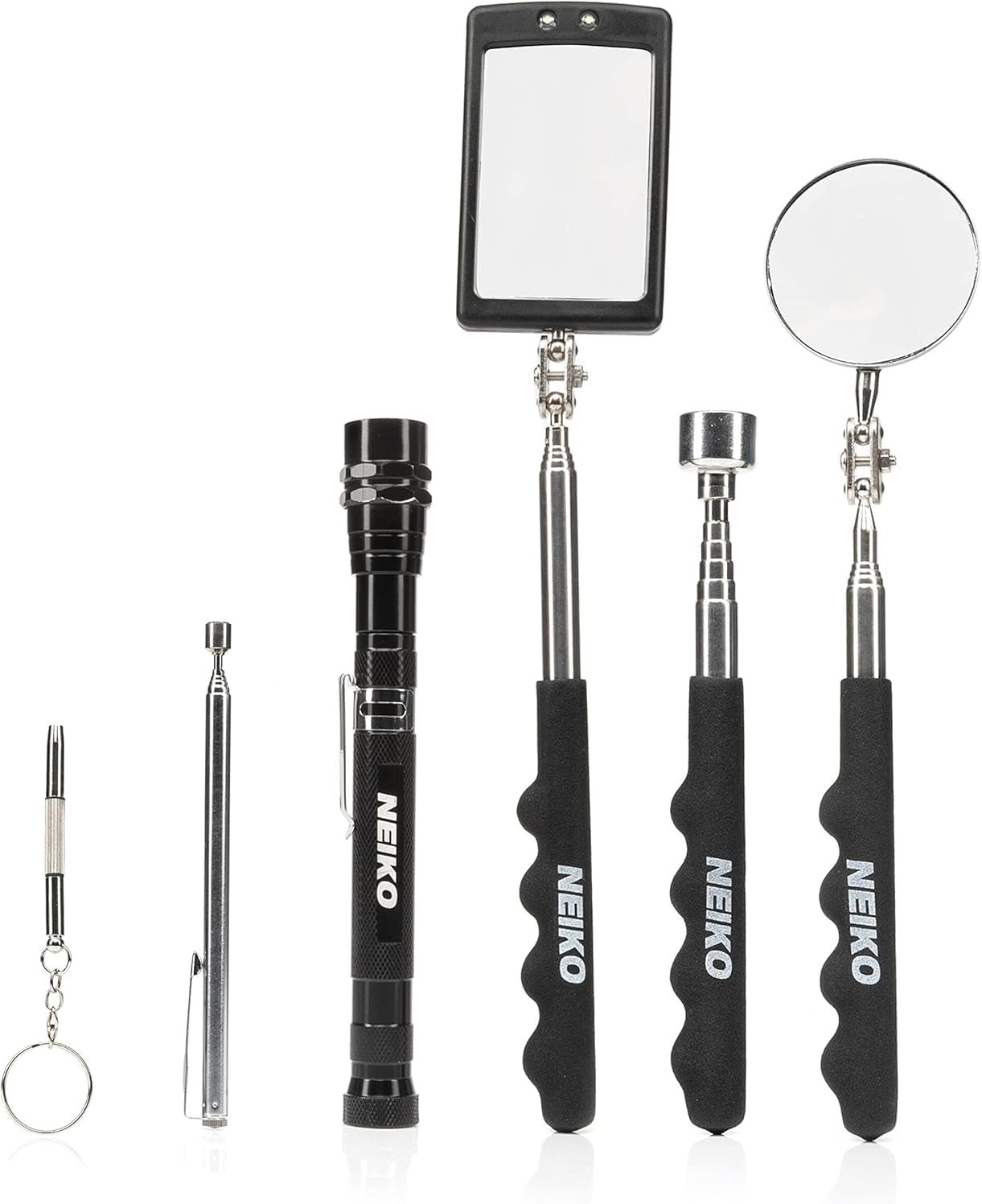 NEIKO 20736A (6) Piece Set, Magnetic Tool & Telescoping Mirror Set, Adjustable Telescoping Magnetic Pickup Tool, Flashlight 15lb Retriever Tool, 360 Swivel, Magnet Mirror, Magnetic Tools for Mechanic