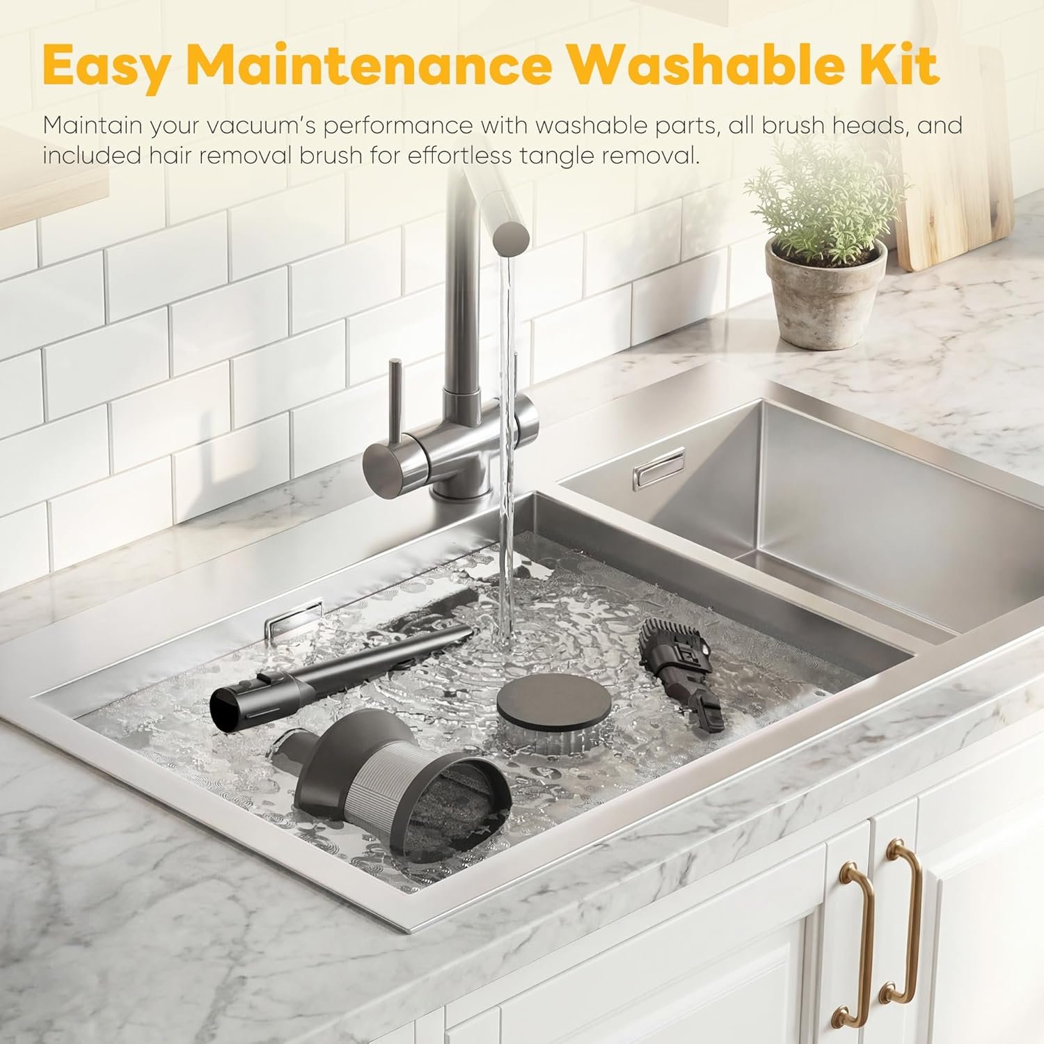 Cordless Vacuum Cleaner, Power Suction Stick Vacuum Cleaners with 2200 mAh Battery,8-in-1 Lightweight Self-Standing, 35 Mins Runtime for Home Hard Floor Low-Pile Carpet Pet Hair