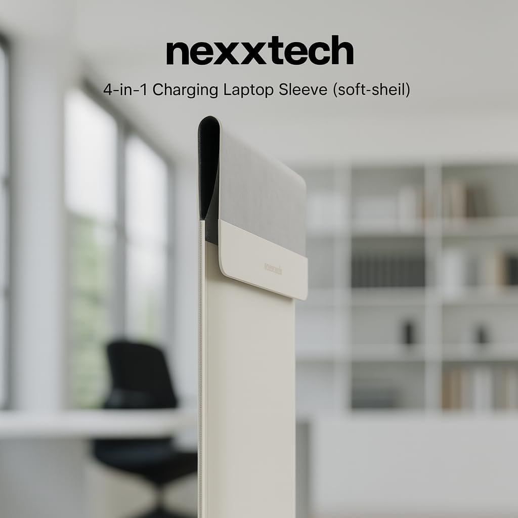 nexxtech 4-in-1 Laptop Sleeve/Case with Mag Safe Charging, PU Leather (15-16inch) Tech Folio | Dove (White) | Soft Shell (Foldable)