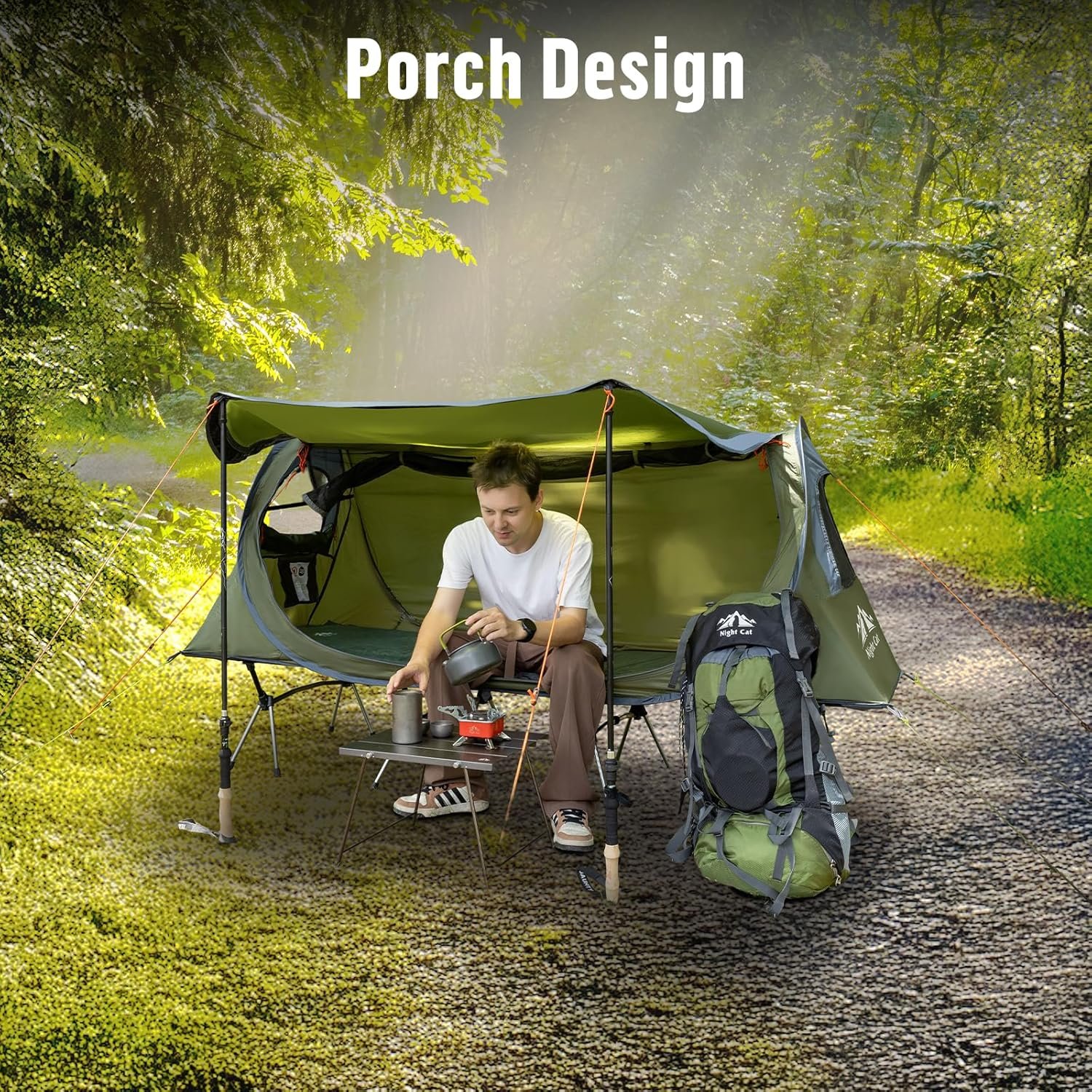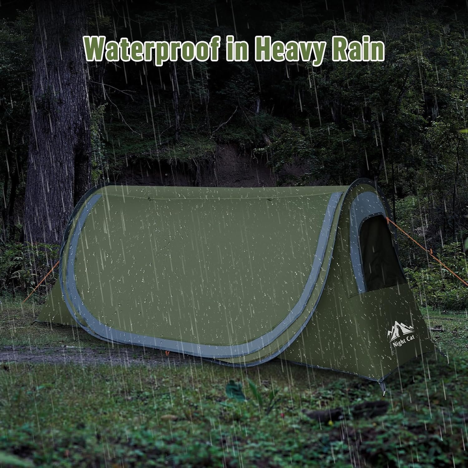 Night Cat Pop-up Camping Tent: 1 Person Tent Waterproof Instant Easy Setup Tunnel Tent Fits with Camping Cot (Excluded)