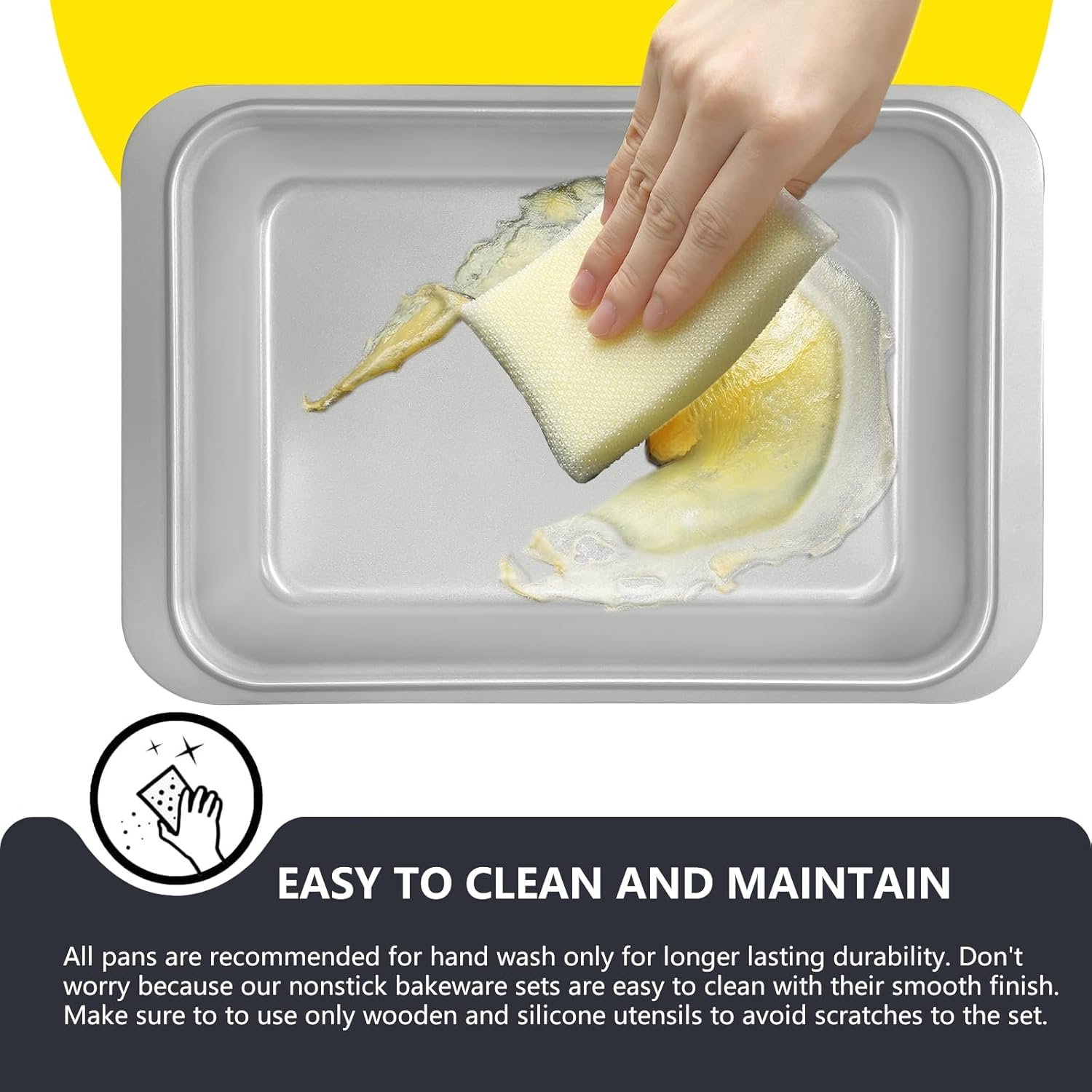Amazon Basics 6 Piece Nonstick, Carbon Steel Oven Safe Bakeware Set with Cake, Muffin, Cookie, and Loaf Pans, 6 Piece, 16.25 x 11.75 x 6.25 inches