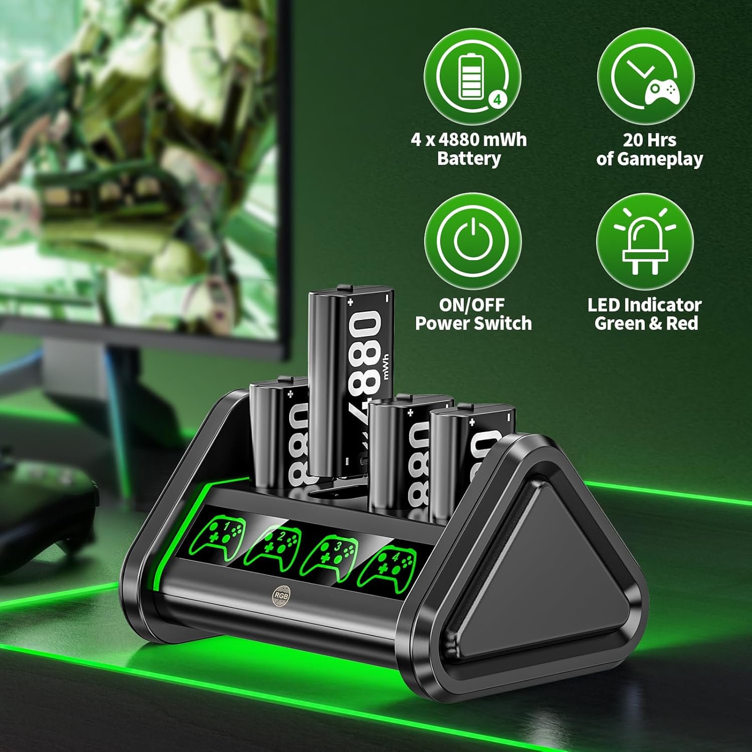 OIVO Rechargeable Battery for XboxOne/Xbox Series X|S, 4 x 4880mWh Xbox Batteries, Xbx Series Battery Charger Station for XboxOne S|X/Elite Controllers