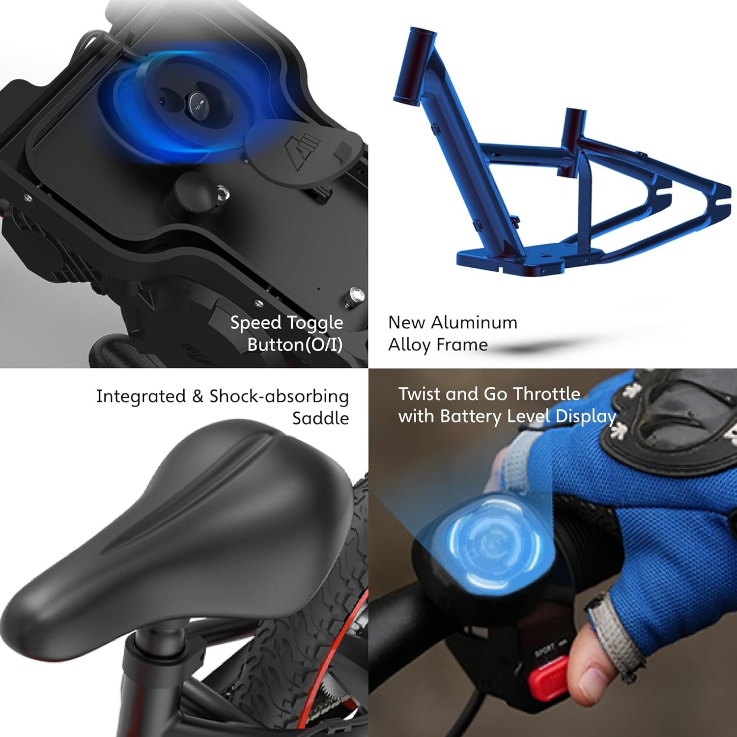 Fat Tire Electric Dirt Bike 500W/700W for Adults 16/20″ Full Suspension Electric Motorcycle Ebikes 48V 13.5/18AH Removable Battery,31MPH Top Speed,40-70 Miles Range,Turn Signals