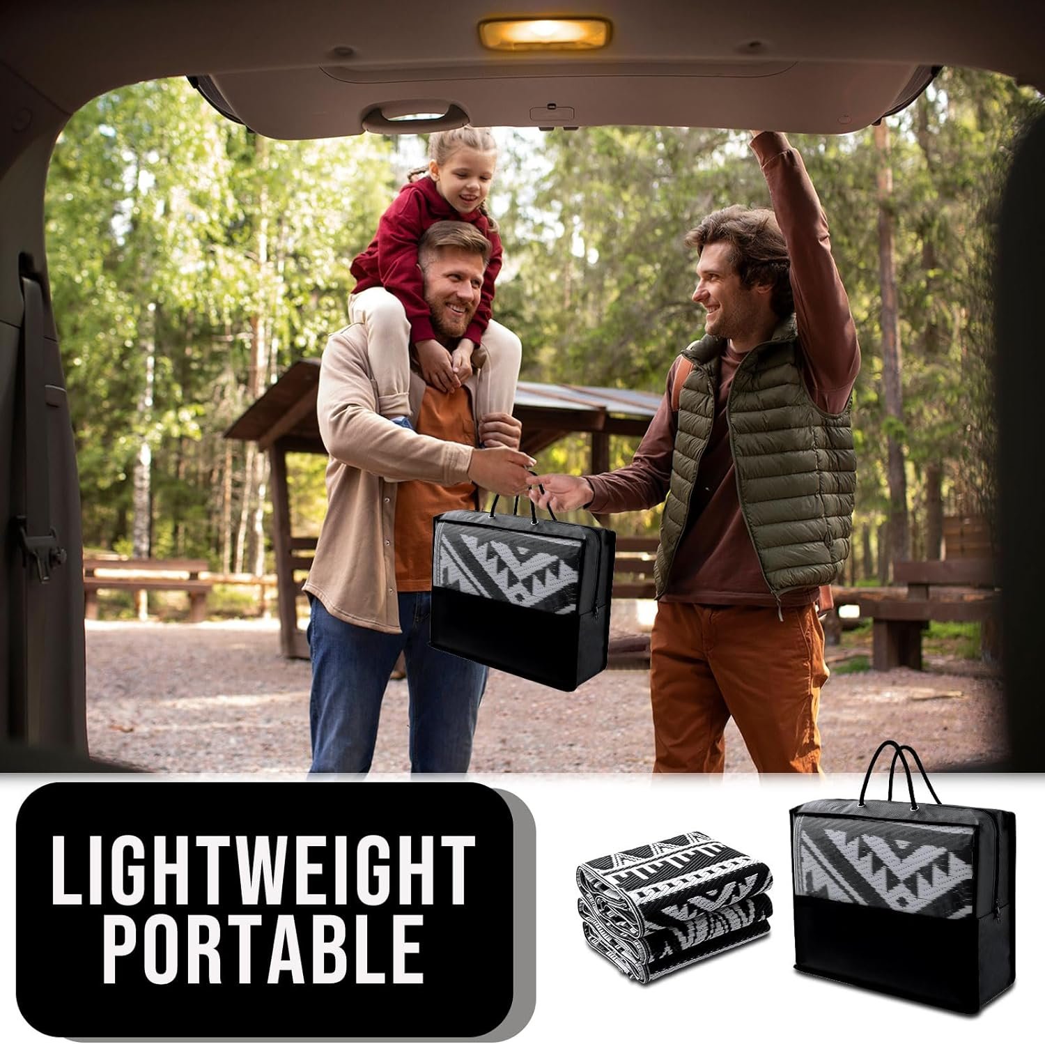 OLANLY Outdoor Rug Waterproof 5×8 ft, Reversible Outdoor Plastic Straw Rug, Boho Patio Rug, Indoor Outdoor Carpet, RV Mat Outside for Patio, Camp, Picnic, Balcony, Deck, Backyard, Black & White