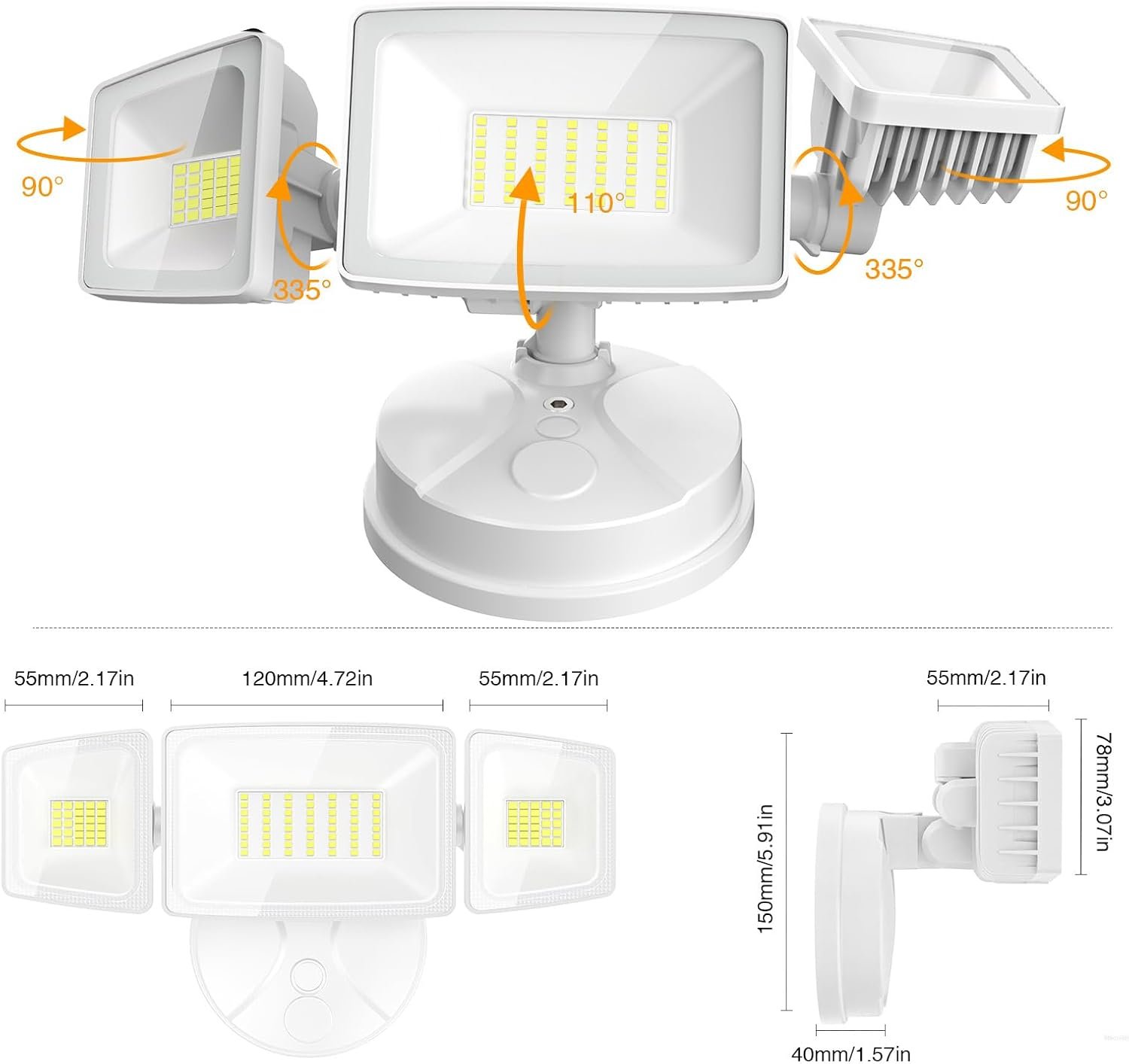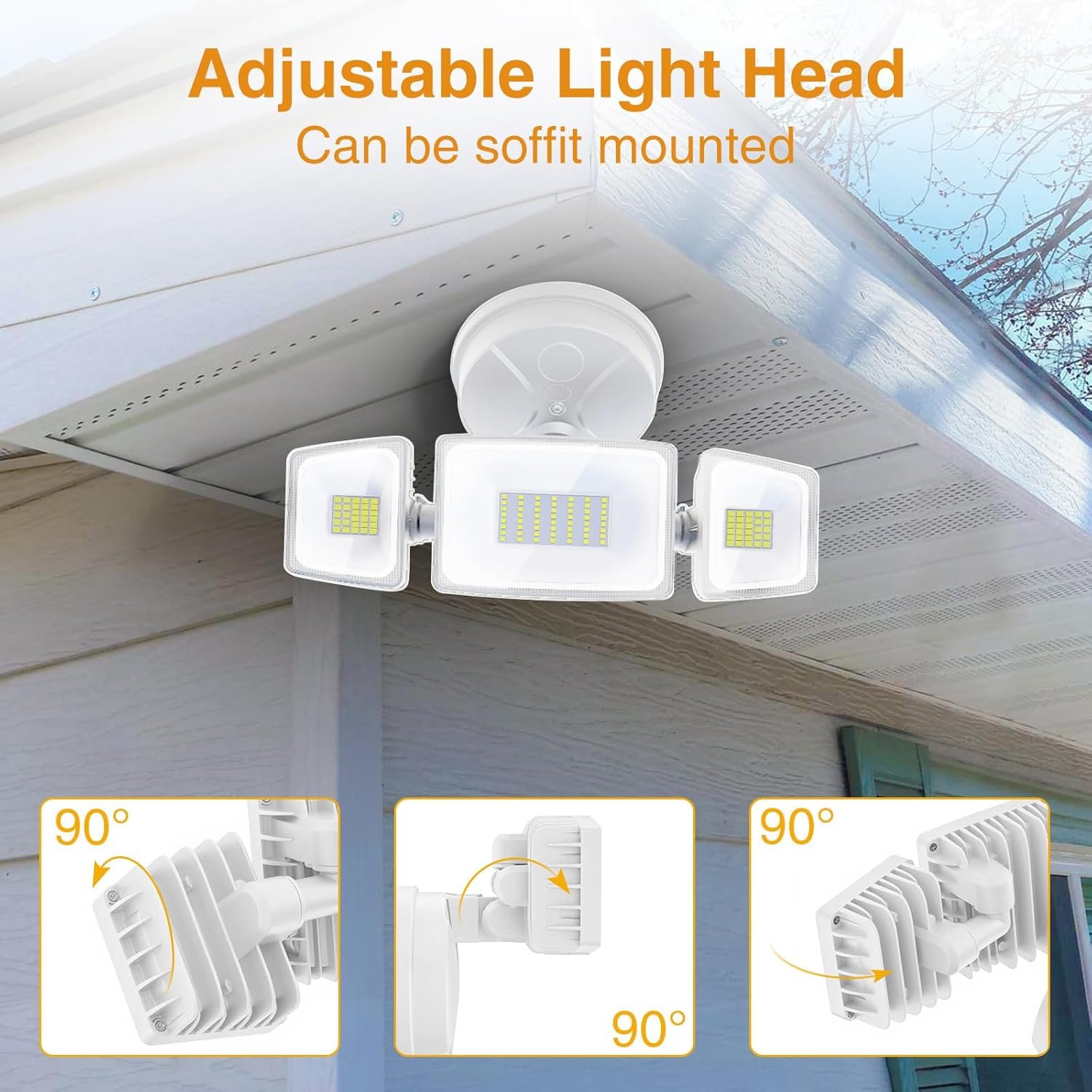 Onforu 75W Flood Lights Outdoor, 7000LM Brightness Security Lights Switch Controlled, 3 Adjustable Heads, IP65 Waterproof, 6500K Wall Mount Exterior LED Flood Light