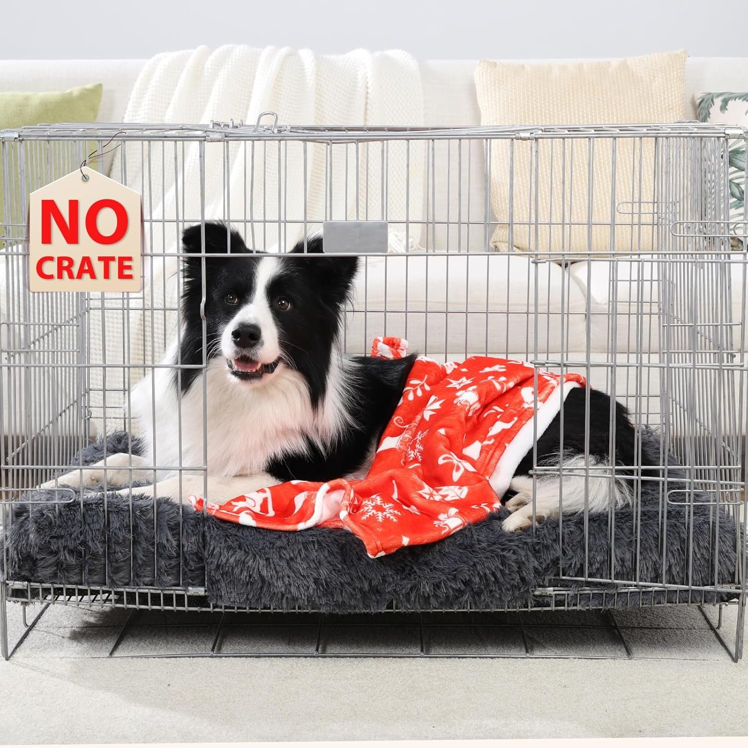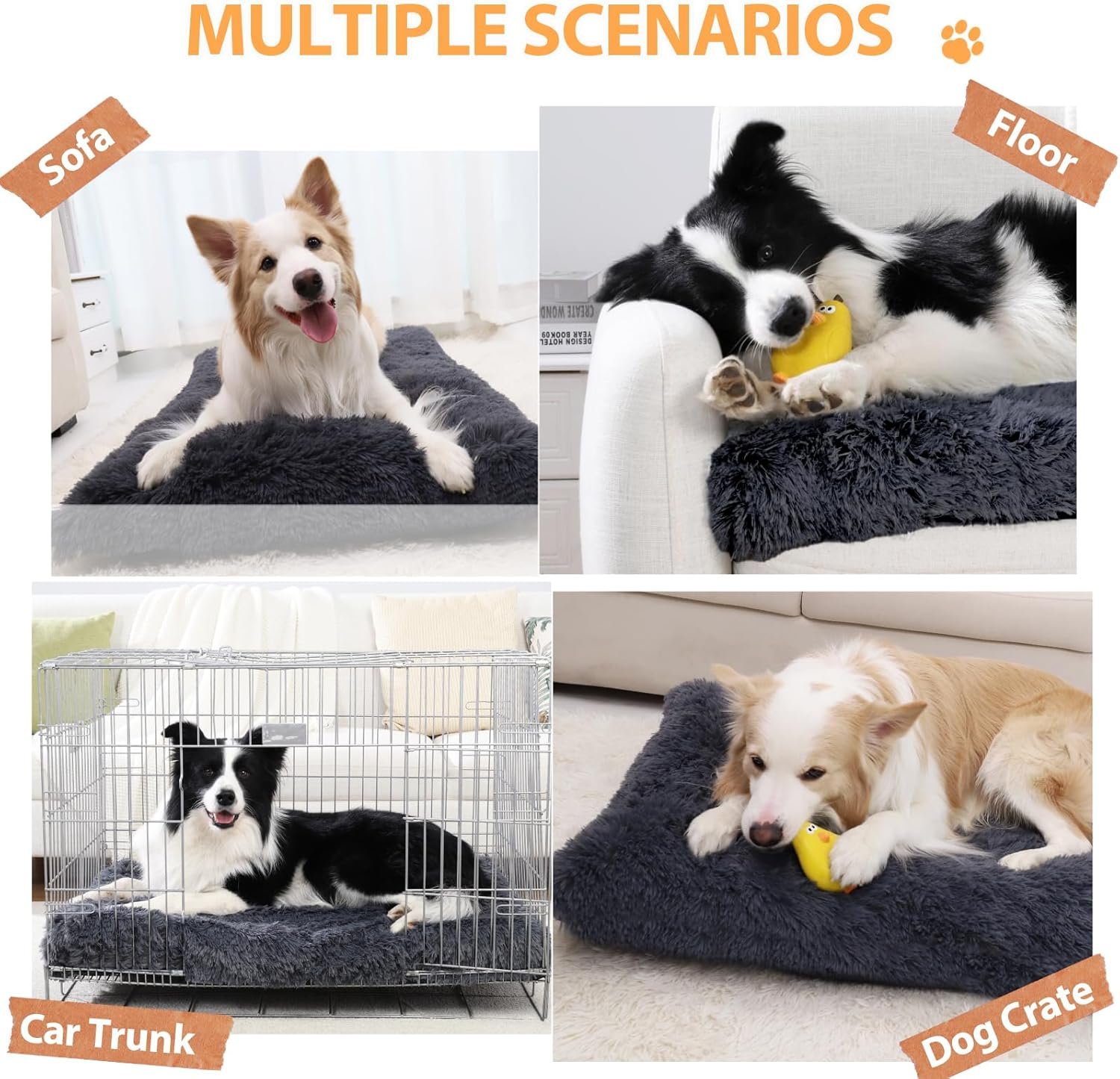 Orthopedic Dog Beds Medium/Large Sized Washable Removable Cover, Plush Dog Bed Waterproof Lining NonSkid Bottom, Crate Foam Pillow Mattress Fluffy Anti Anxiety Pet Pad 35×23 Inch, Dark Grey