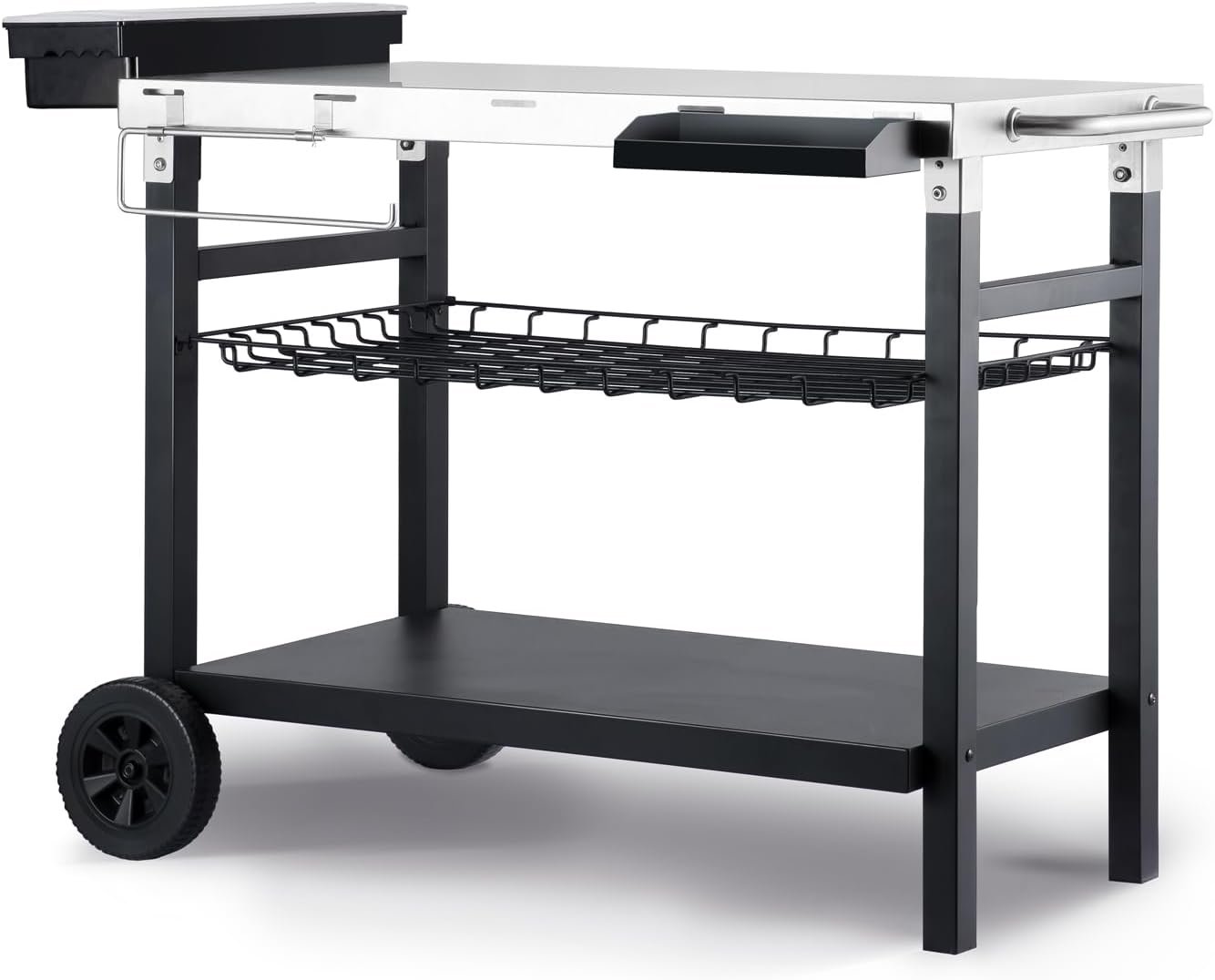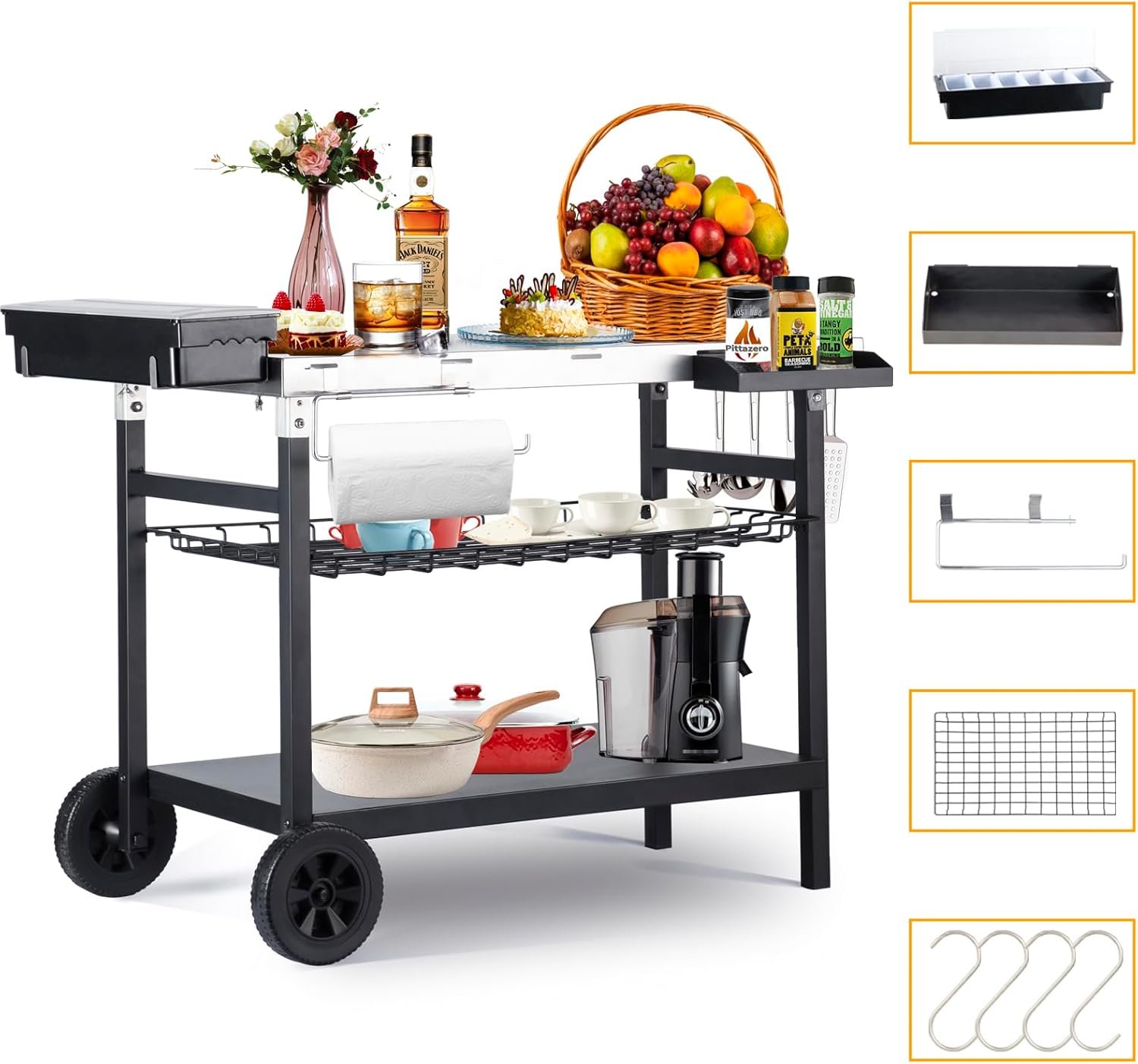 Outdoor Grill Cart, 500lb Dining Cart Table with Three-Shelf, Stainless Steel Rolling Movable Food Prep and Work Table