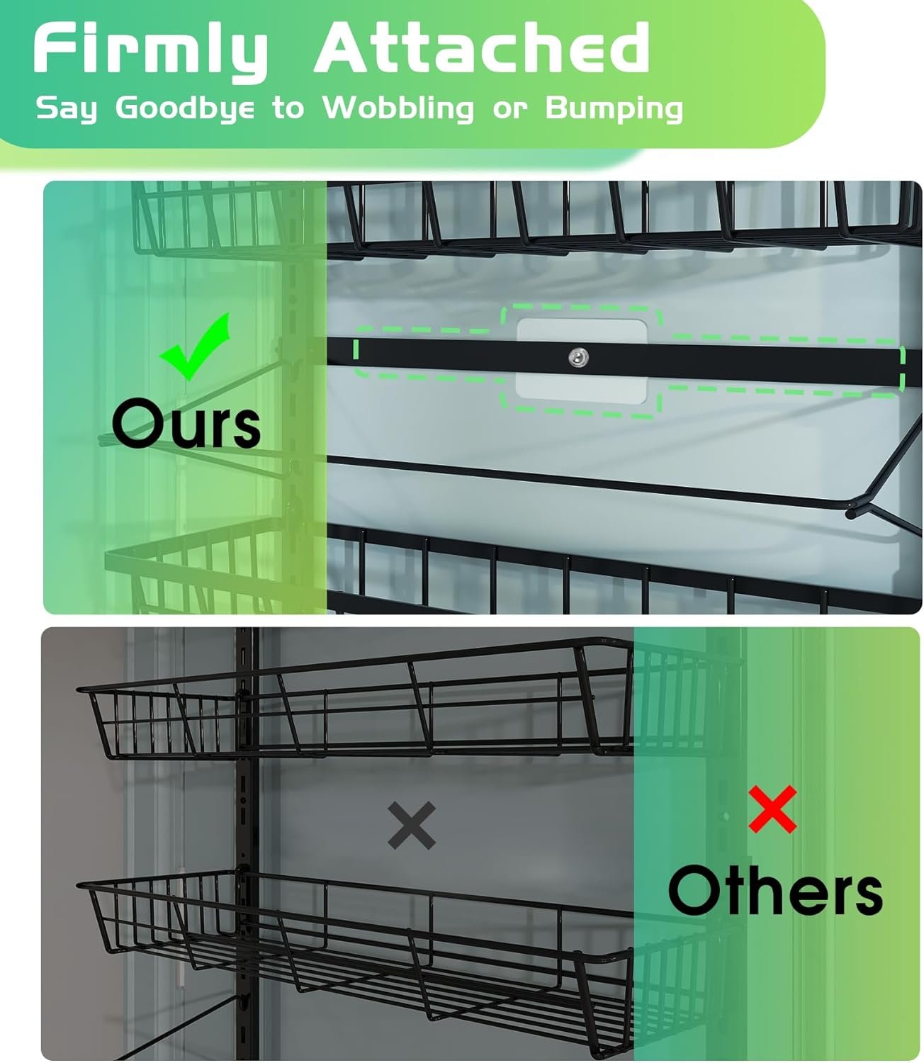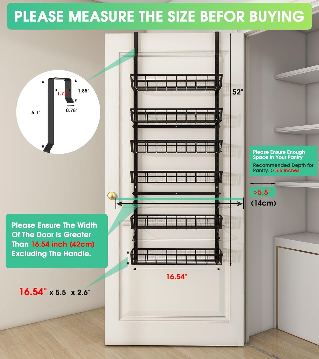 Over The Door Pantry Organizer, Pantry Storage and Organization, 6-Tier Adjustable Hanging Baskets, Metal Wall Mount Spice Rack Seasoning Shelves for Home & Kitchen, Laundry Bathroom – Black