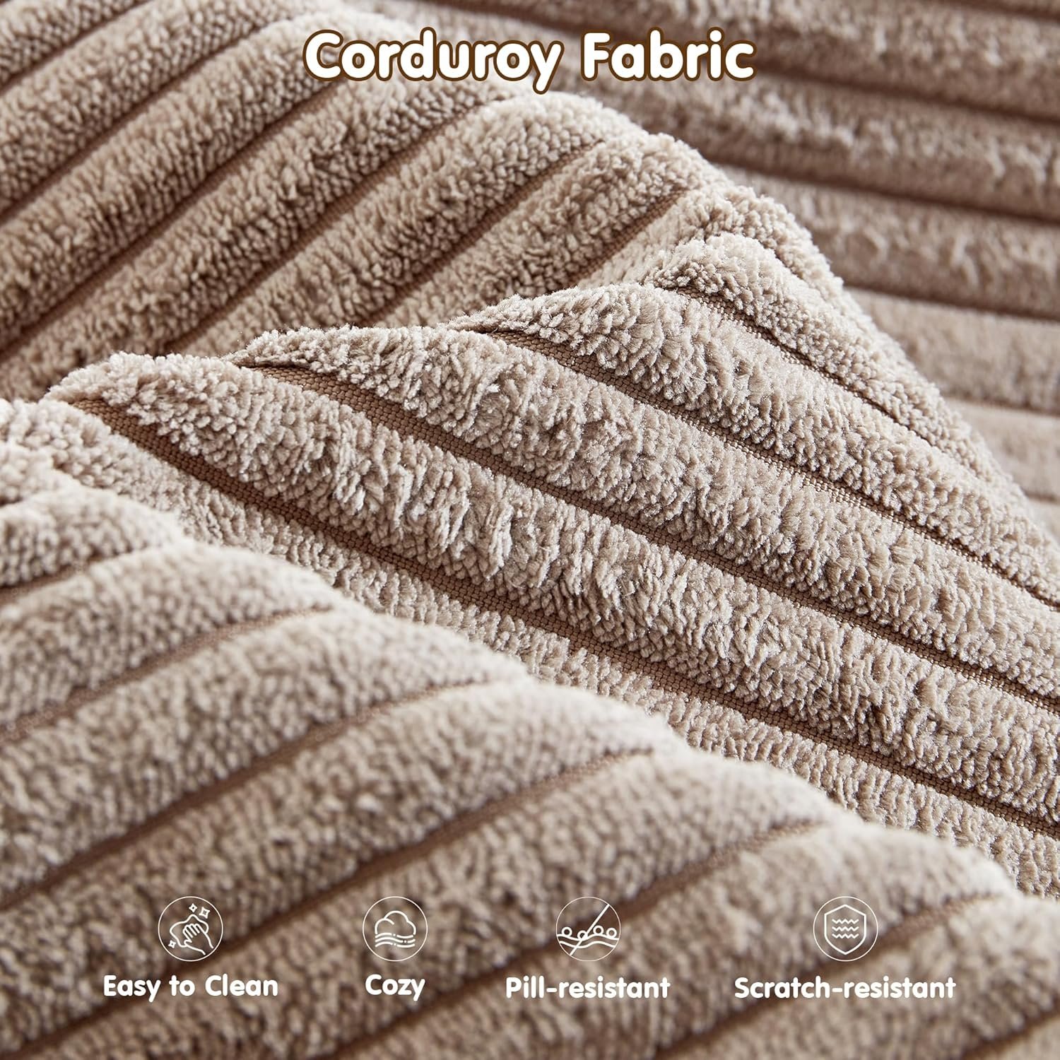 ovios 104″ Cloud Boneless Couch with L-Shape Chaise,Modern Sectional Modular Sofa with Deep Seat, Upholstered Couches for Living Room Bedroom,No Assembly Required, Camel (Corduroy Fabric)