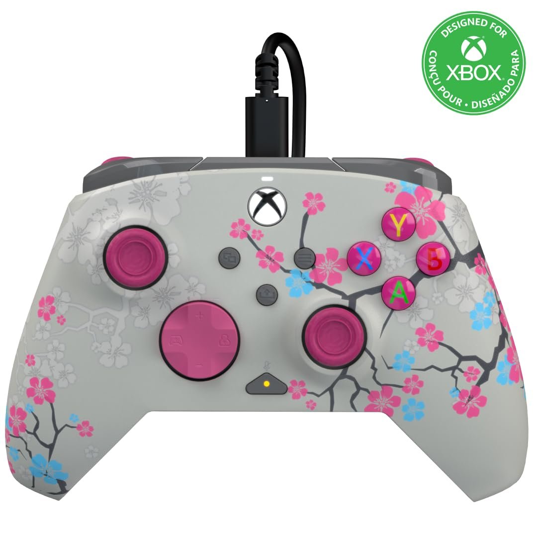 PDP Gaming REMATCH GLOW Enhanced Wired Controller: Licensed Gamepad for Xbox Series X|S, Xbox One, Windows PC, Mappable Back Buttons, Advanced Customizable App – Cherry Blossom (Pink Glow in the Dark)