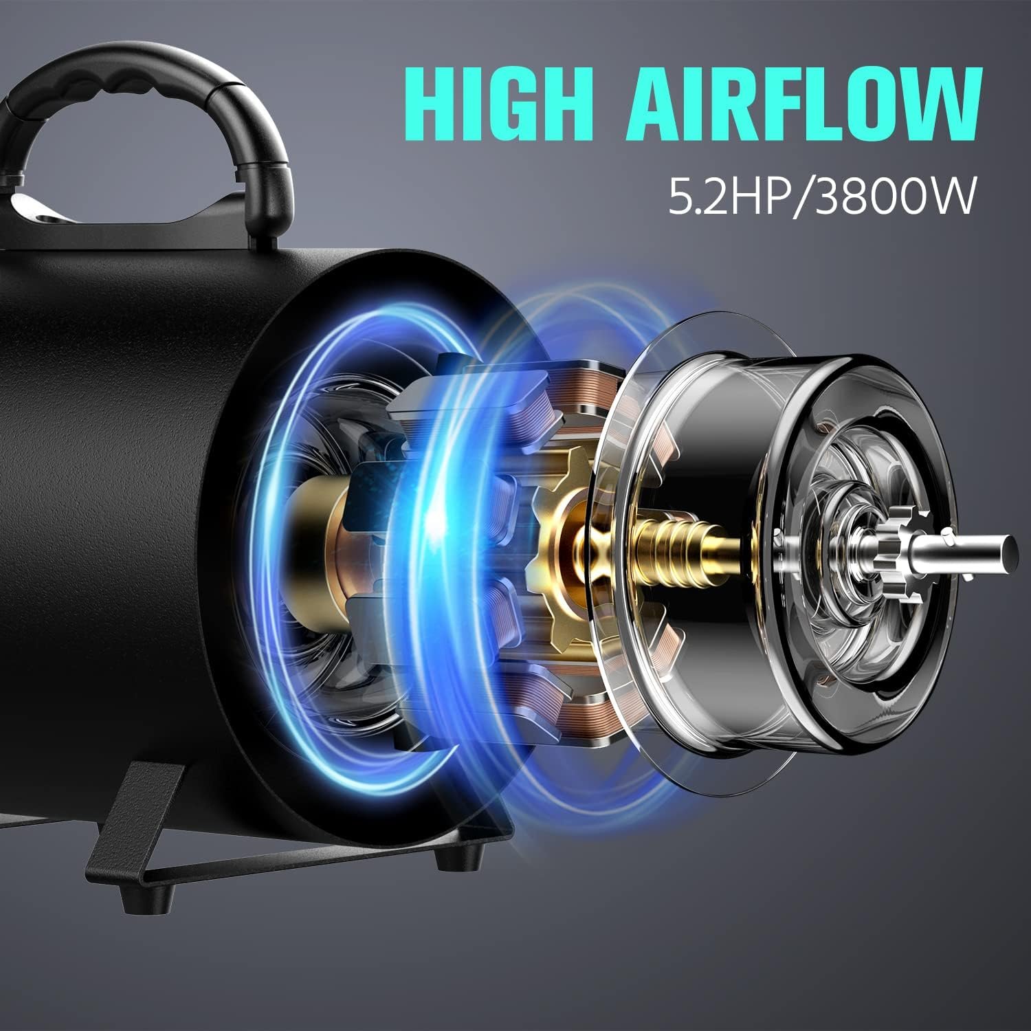 Pet Dryer, 5.2HP/3800W Pet Grooming with Adjustable Speed and Temperature Control Dog Blow Dryer, Pet Hair Dryer with 3 Nozzle