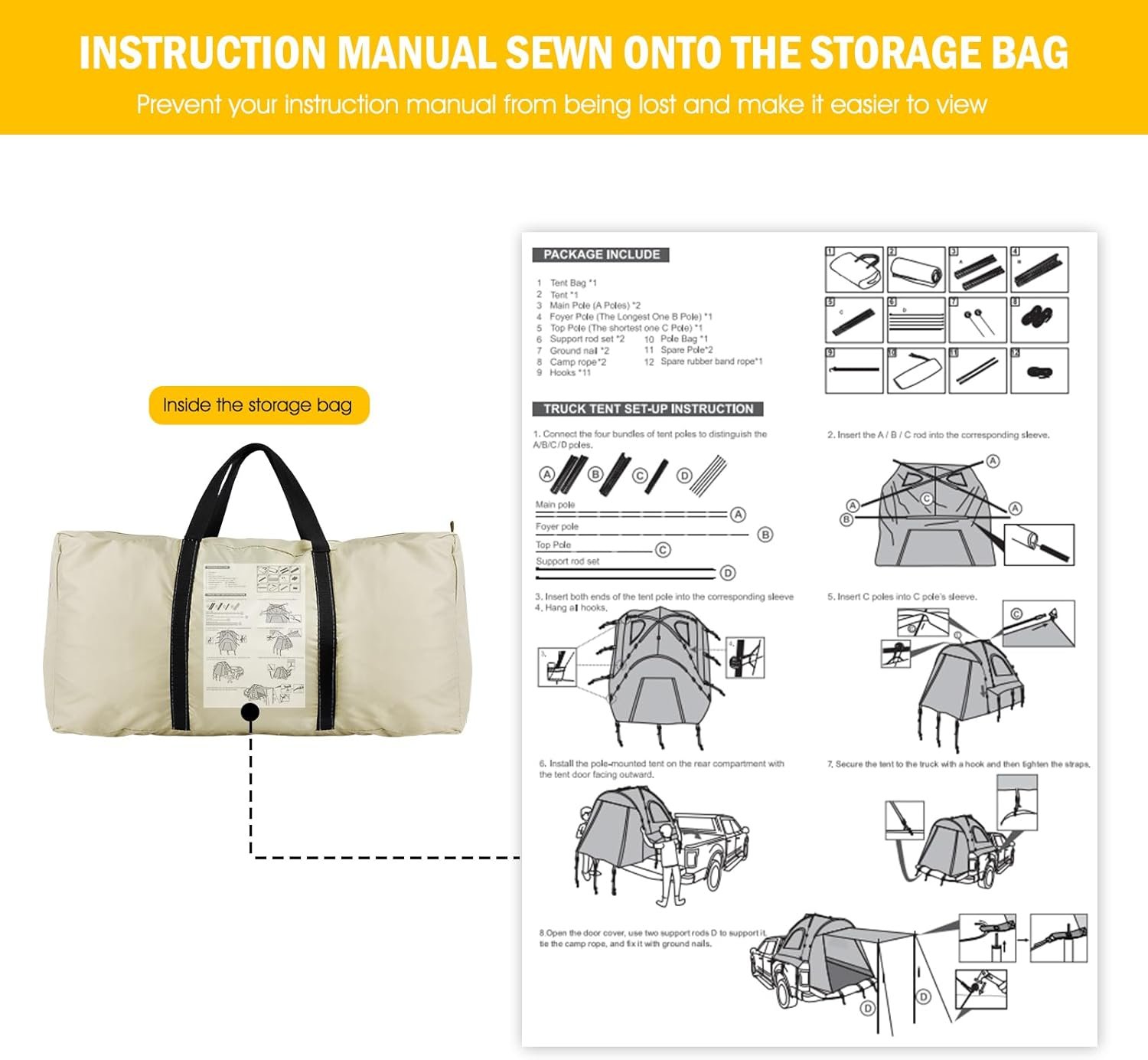 Pickup Truck Tent with Awning Shade,Waterproof PU5000mm Oxford for 5.5-6.3 FT Truck Bed for Camping Travel Outdoor Activities for Chevy Silverado 1500,Ram 1500/Dakota,F150,GMC 1500,Titan,Tundra