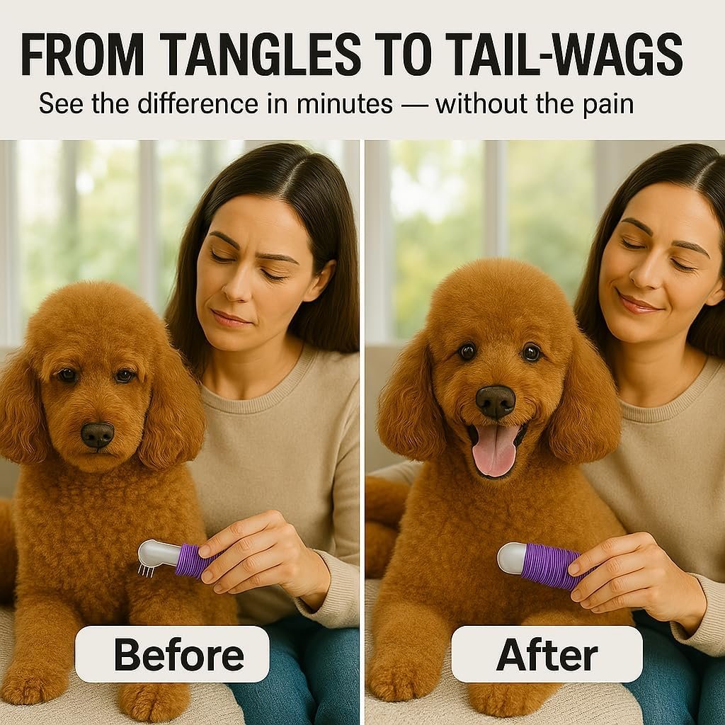 Poodle Dematting Fur Rake Comb Brush for Dogs and Cats – Long 2.5″ Steel Safety Blades Metal Comb for Detangling Matted or Knotted Undercoat Hair