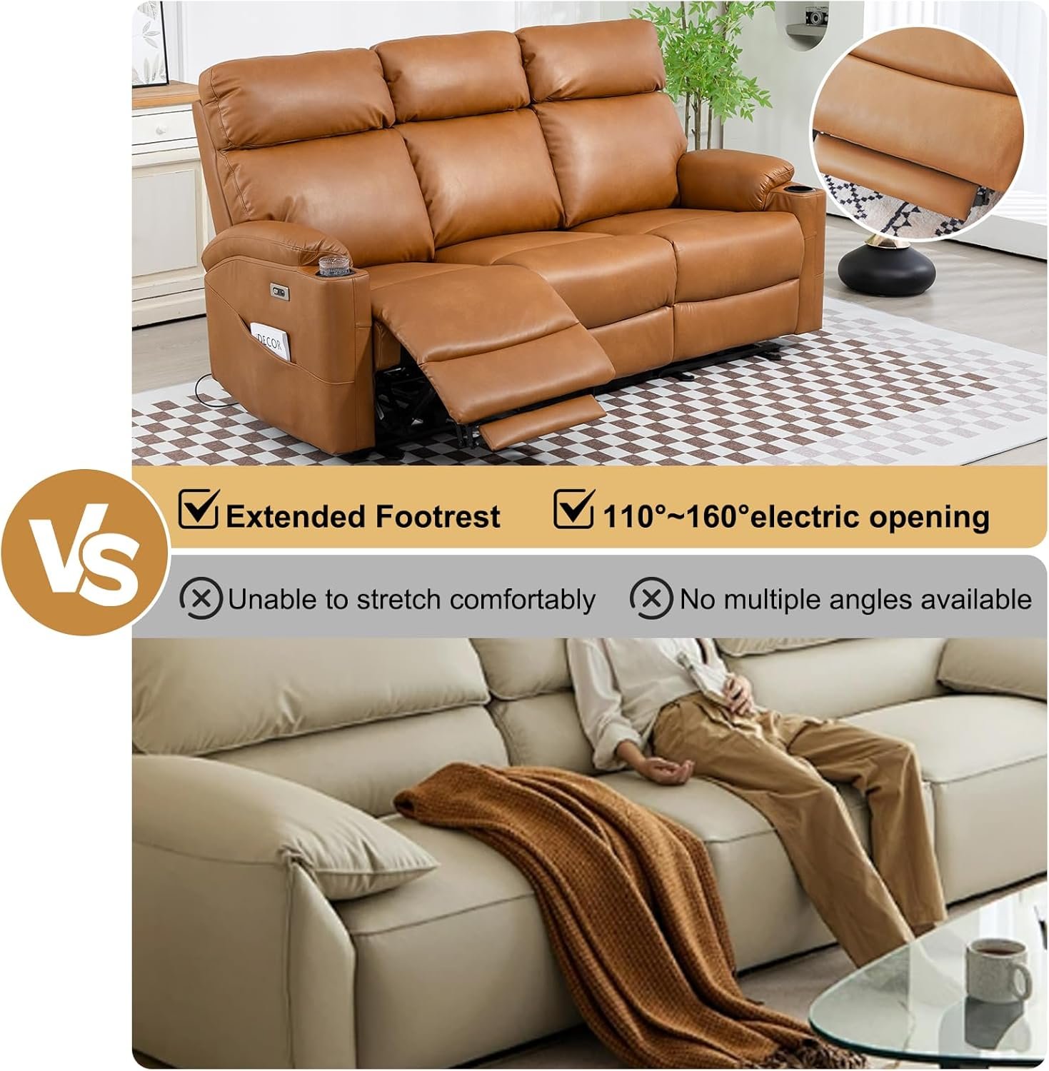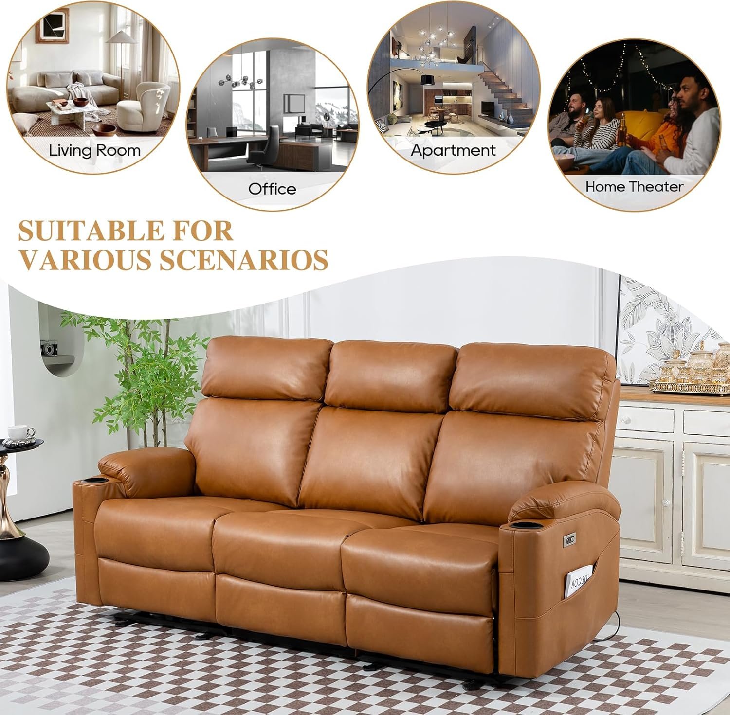 Power Reclining Sofa – 3 Seater Recliner Sofás, PU Leather Sofa, Home Theater Seating with Flipped Middle Backrest, Power Recliner Couch for Living Room(Brown)