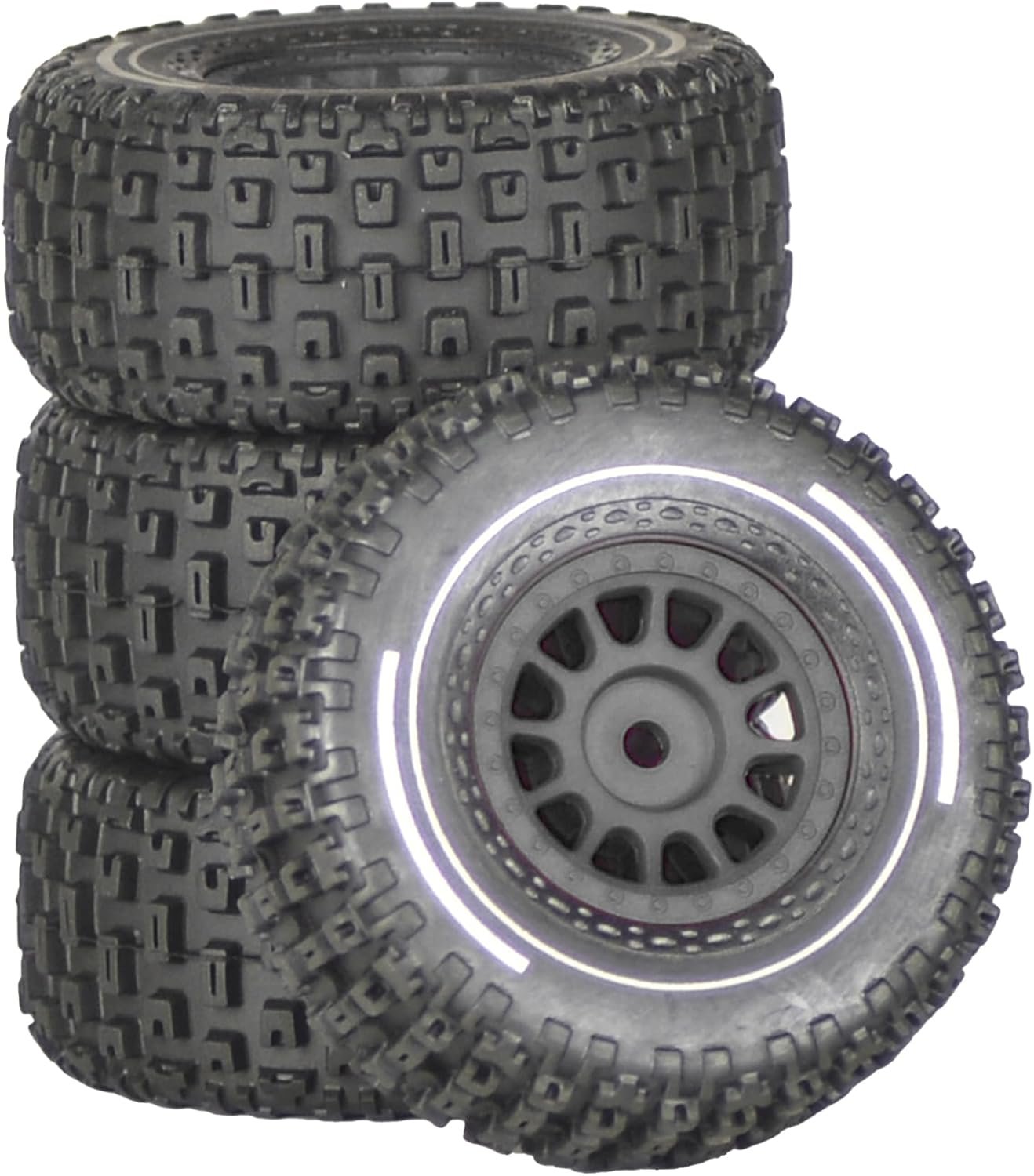 Pre-Glued 1/14 RC Truck Tires & Wheels (4PCS) – 12mm Hex All-Terrain Tires 2.56″ OD – for Traxxas, ARRMA Mojave GROM,MJX Hyper Go 14301 14302 14303,Tamiya Kyosho HPI 1/14-1/18 Scale On/Off Road