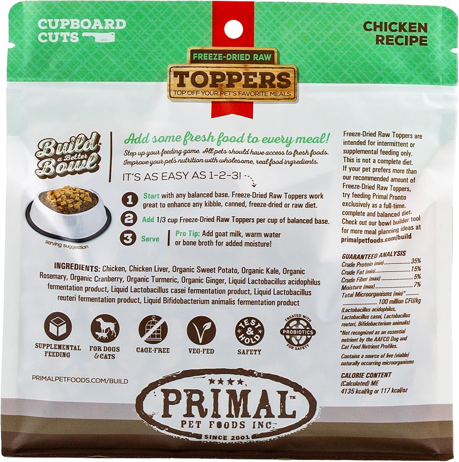 Primal Dog Food Toppers & Cat Food Toppers, Cupboard Cuts, Grain Free Meal Mixers with Probiotics, Raw Freeze Dried Dog Treats & Cat Treats, Great for Training (Chicken, 3.5 oz)