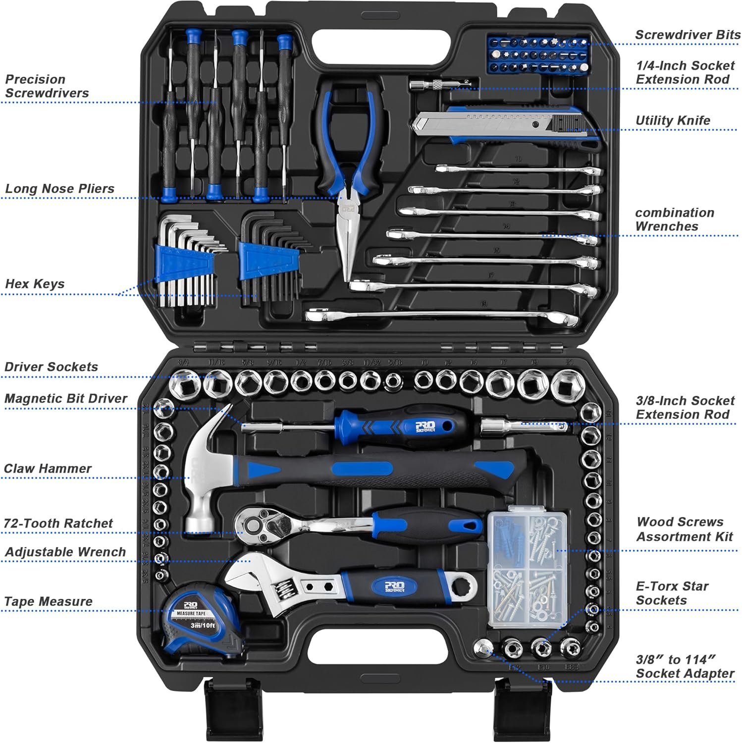 Prostormer 200-Piece Hand Tool Set, General Home and Auto Repair Tool Kit with Toolbox Storage Case for Mechanical Repair, DIY, Home Maintenance