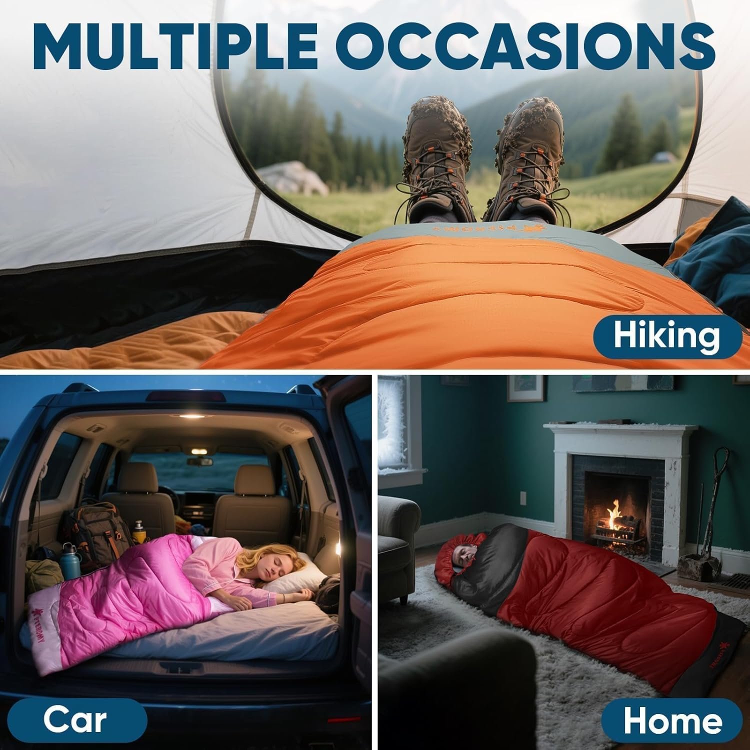 PTEROMY Sleeping Bags for Adults, Lightweight Water Resistant Backpacking Camping Sleeping Bag for Warm Cold Weather, Camping Essentials for Hiking Outdoor Travel